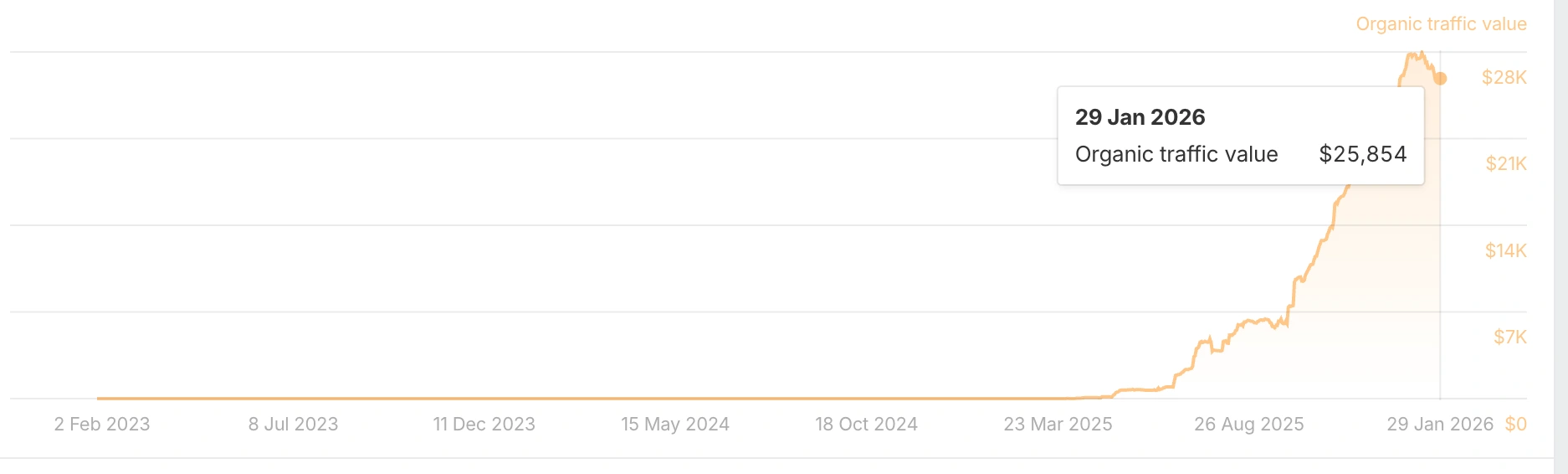 Traffic value: We were able to build up $27,000+ worth of monthly organic traffic value, which represents the equivalent ad spend needed to generate the same visibility.