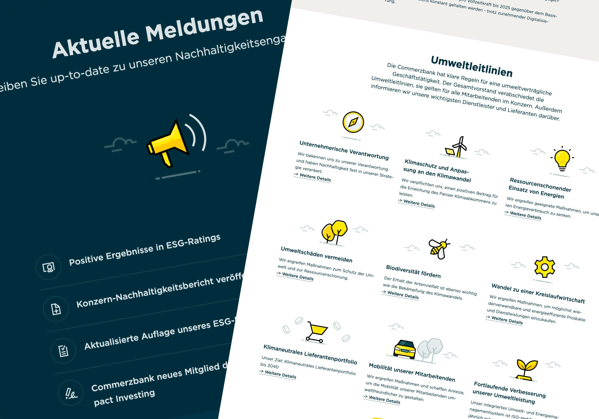 Over two years (four part-time), I developed Commerzbank’s scalable icon and illustration system in close collaboration with Brand, UX, and Development teams. The work ensured a unified visual language across all platforms — mobile app, website, online banking (internal and customer-facing), and Service Terminals.