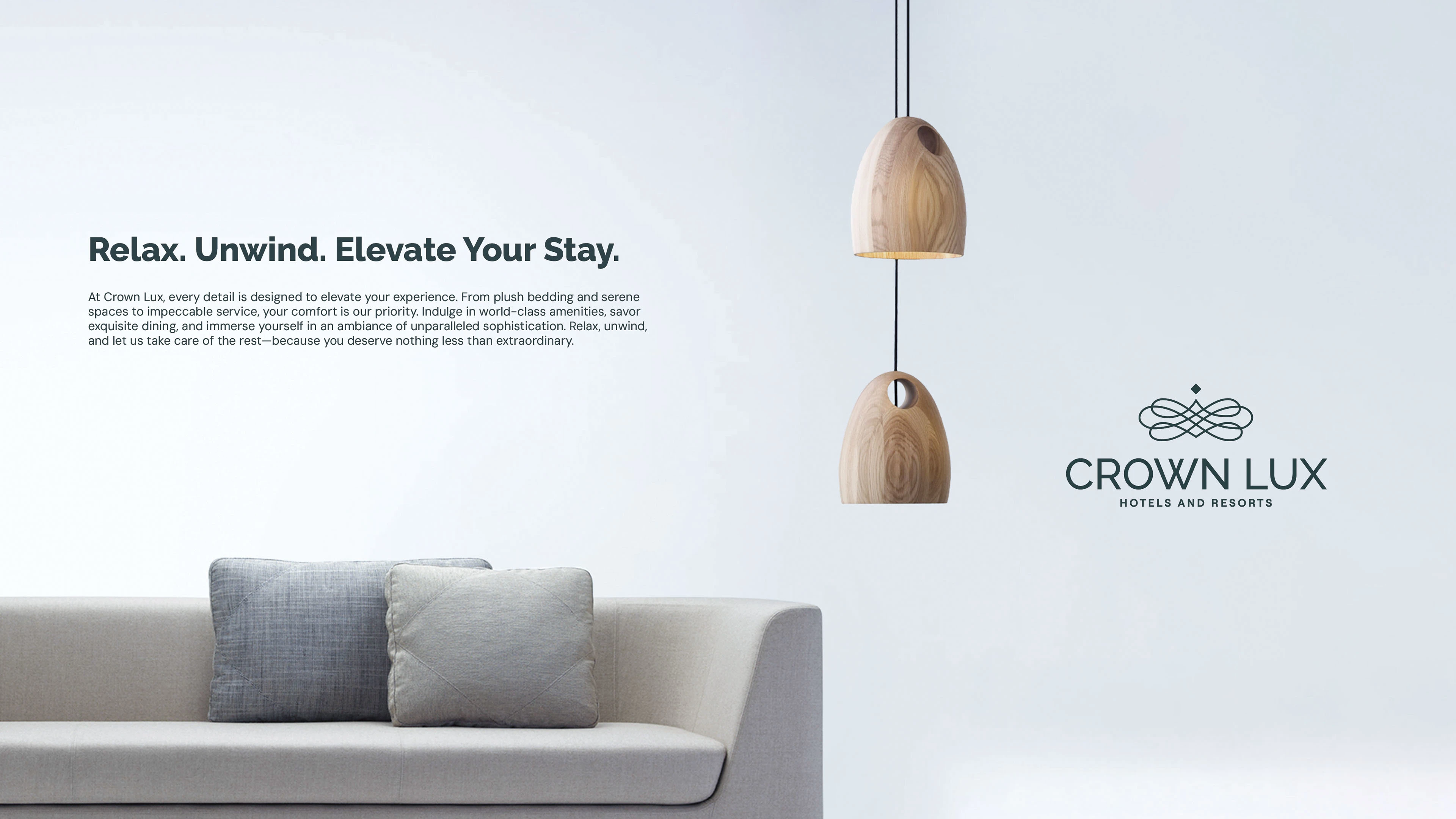 The creative direction began with exploring Crown Lux’s core character: a hotel experience shaped by authenticity, heritage, and modern luxury. This identity needed to speak not only to global travelers, but also to the cultural depth and refinement at the heart of the brand. The challenge was to create visuals that feel premium, memorable, and adaptable across both digital and physical hospitality environments.