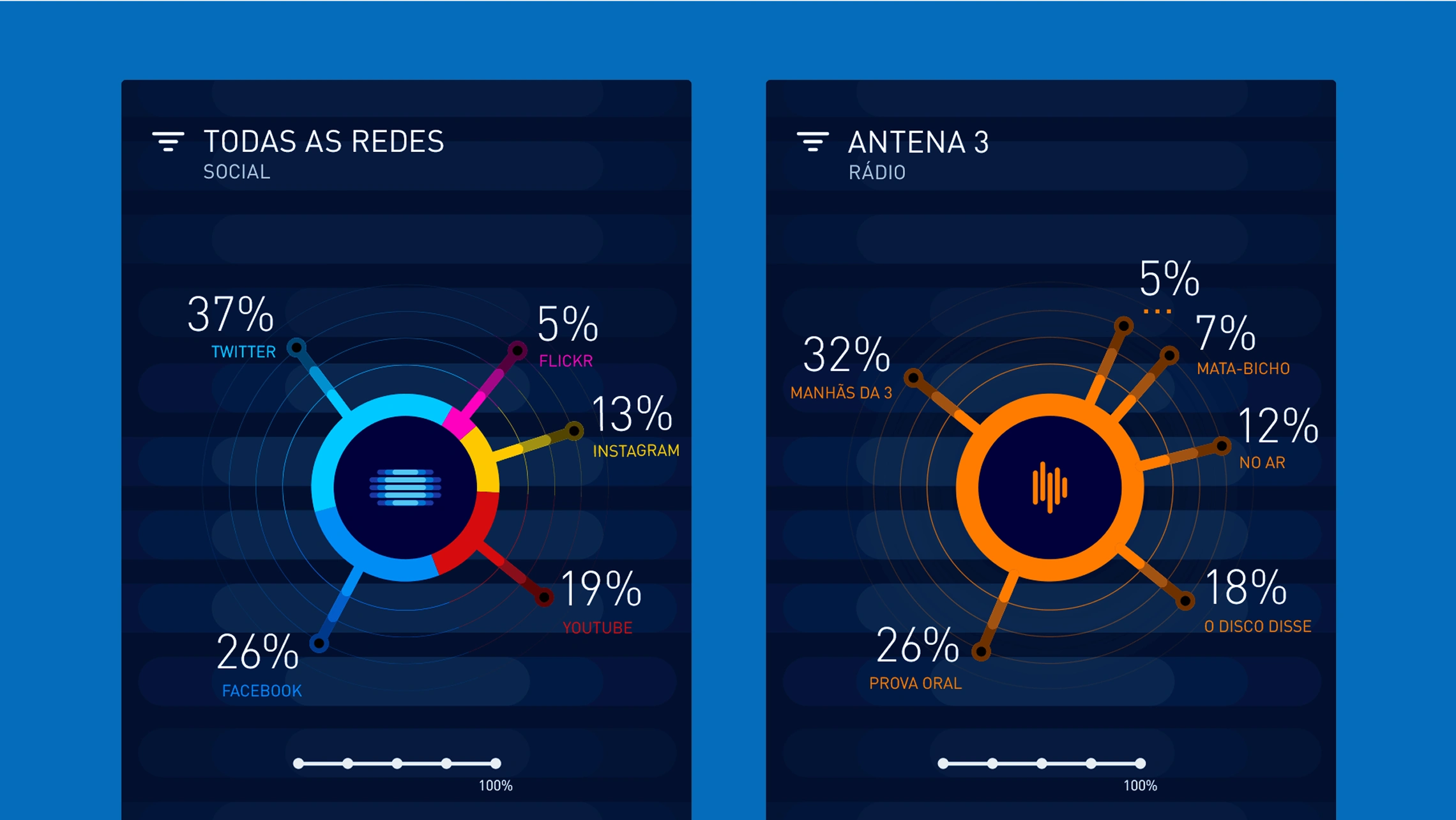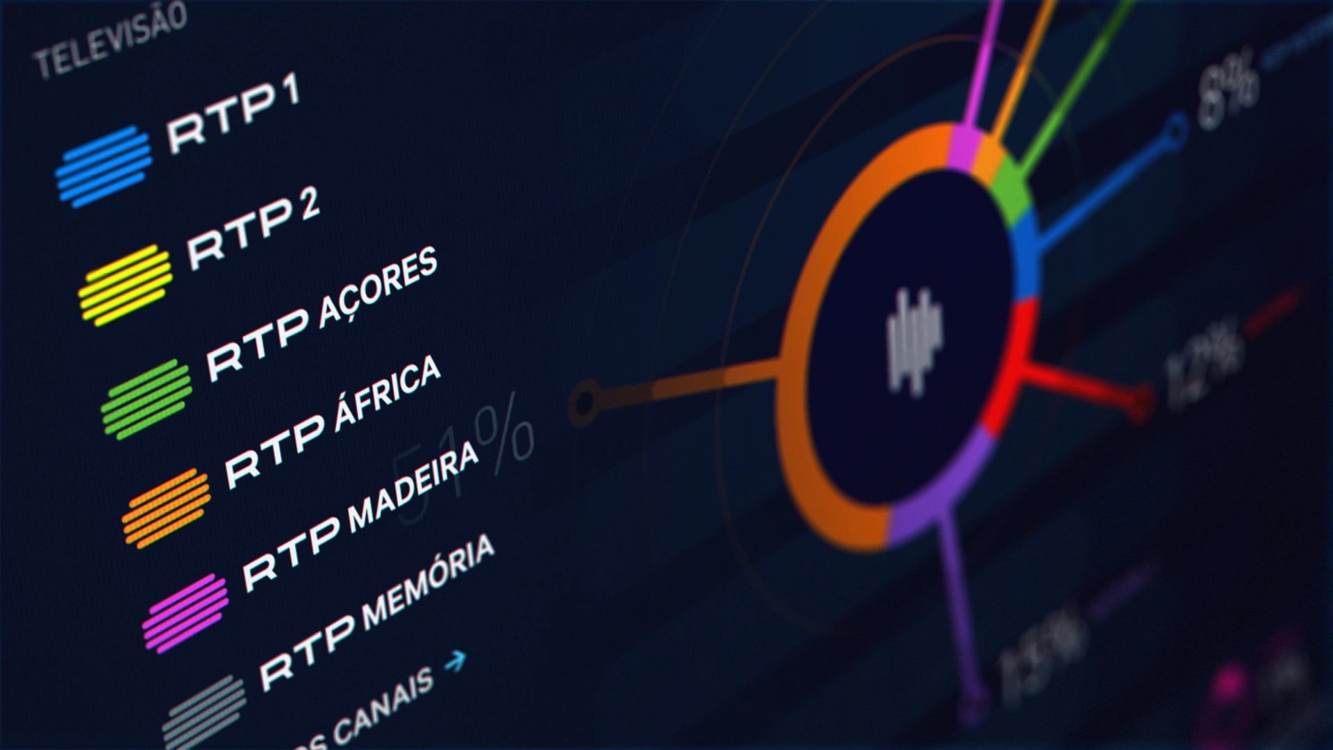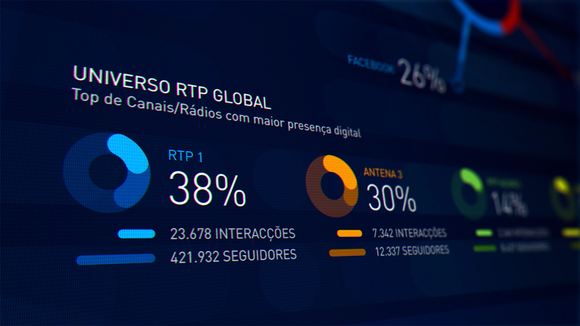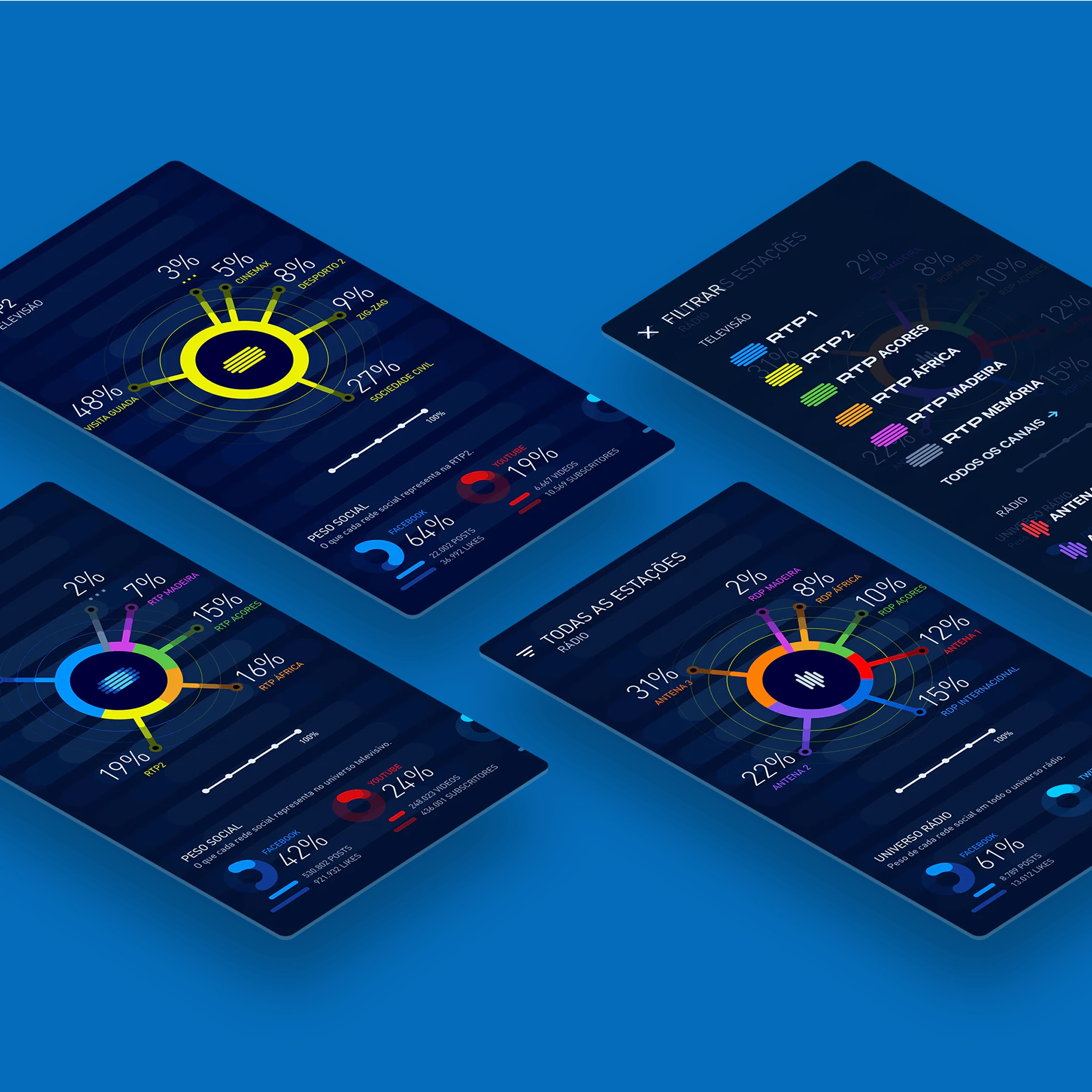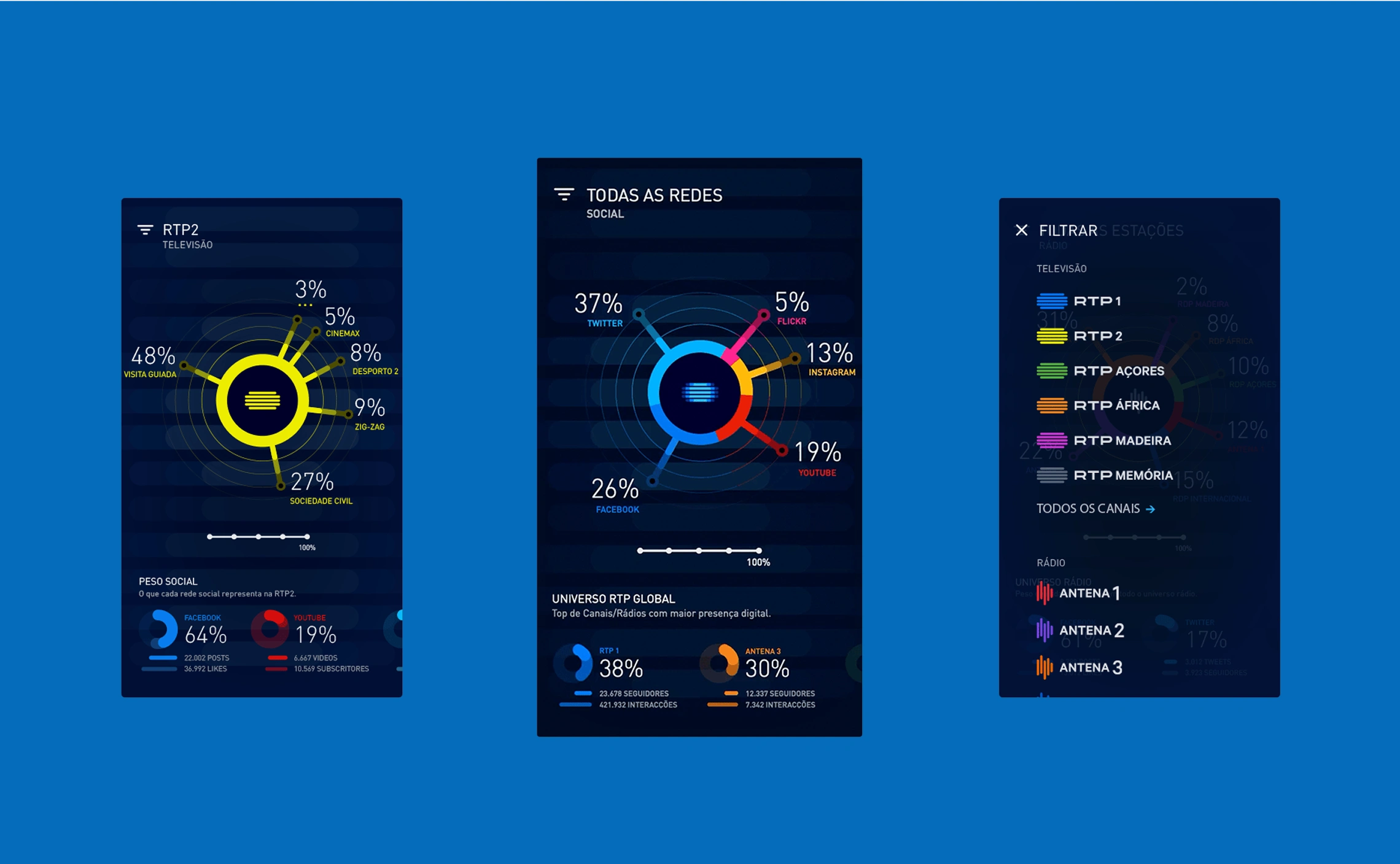 UI/UX for an interactive infographic concept that measures RTP's real-time social activity across channels and stations.