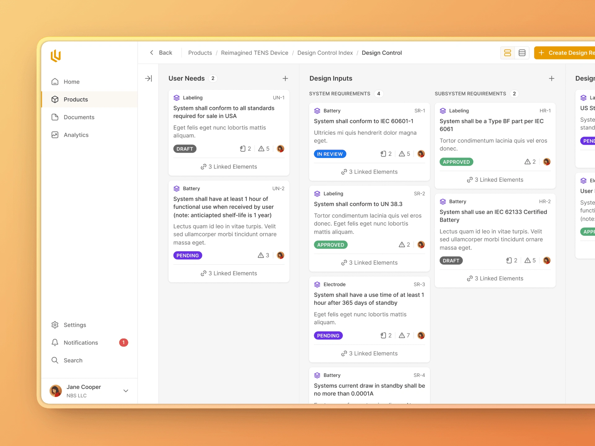 The Design Control module within Ultralight is the core of where design decisions, requirements and review take place. From the very conception of a med device, the every decision made has to be documented. The Design Control allows engineers and managers to clearly note decisions throughout the product design process, making future approvals a breeze.