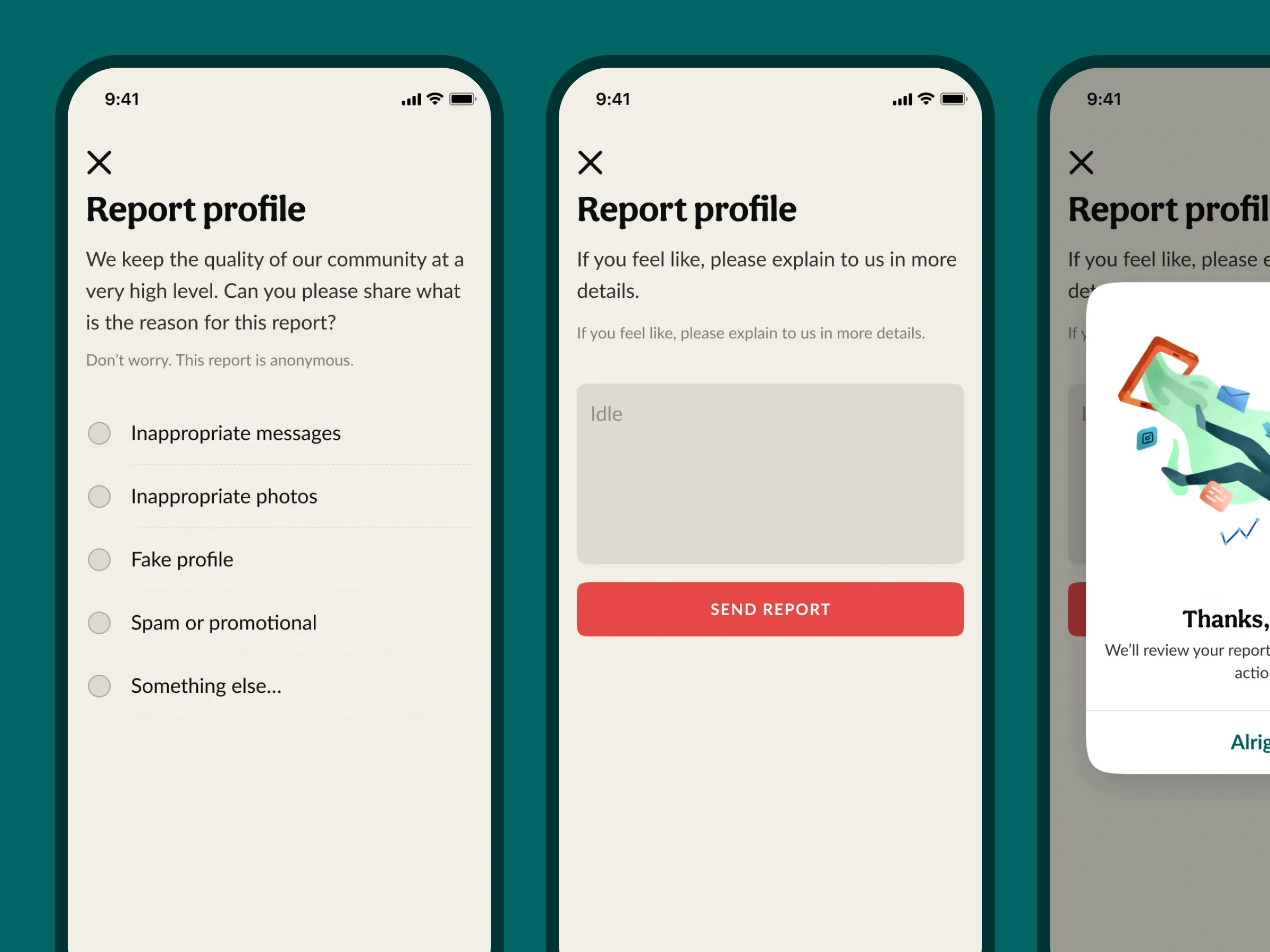 Real-life meetups require robust safety layers. I designed an integrated reporting system so members could quietly flag a profile for inappropriate behaviour or suspicious activity. This wasn’t an afterthought—it was foundational. Great communities need great guardrails.