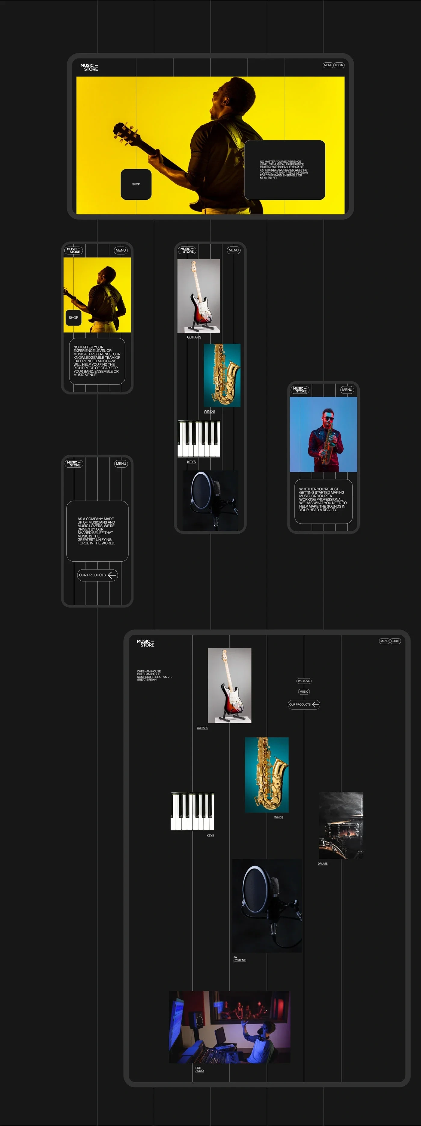 Each section of the site—from product displays to artist features—is designed with a sense of motion and flow, echoing the rhythm of music itself. Custom icons, clean product cards, and interactive elements make the shopping experience engaging and intuitive, while also elevating the brand’s identity.