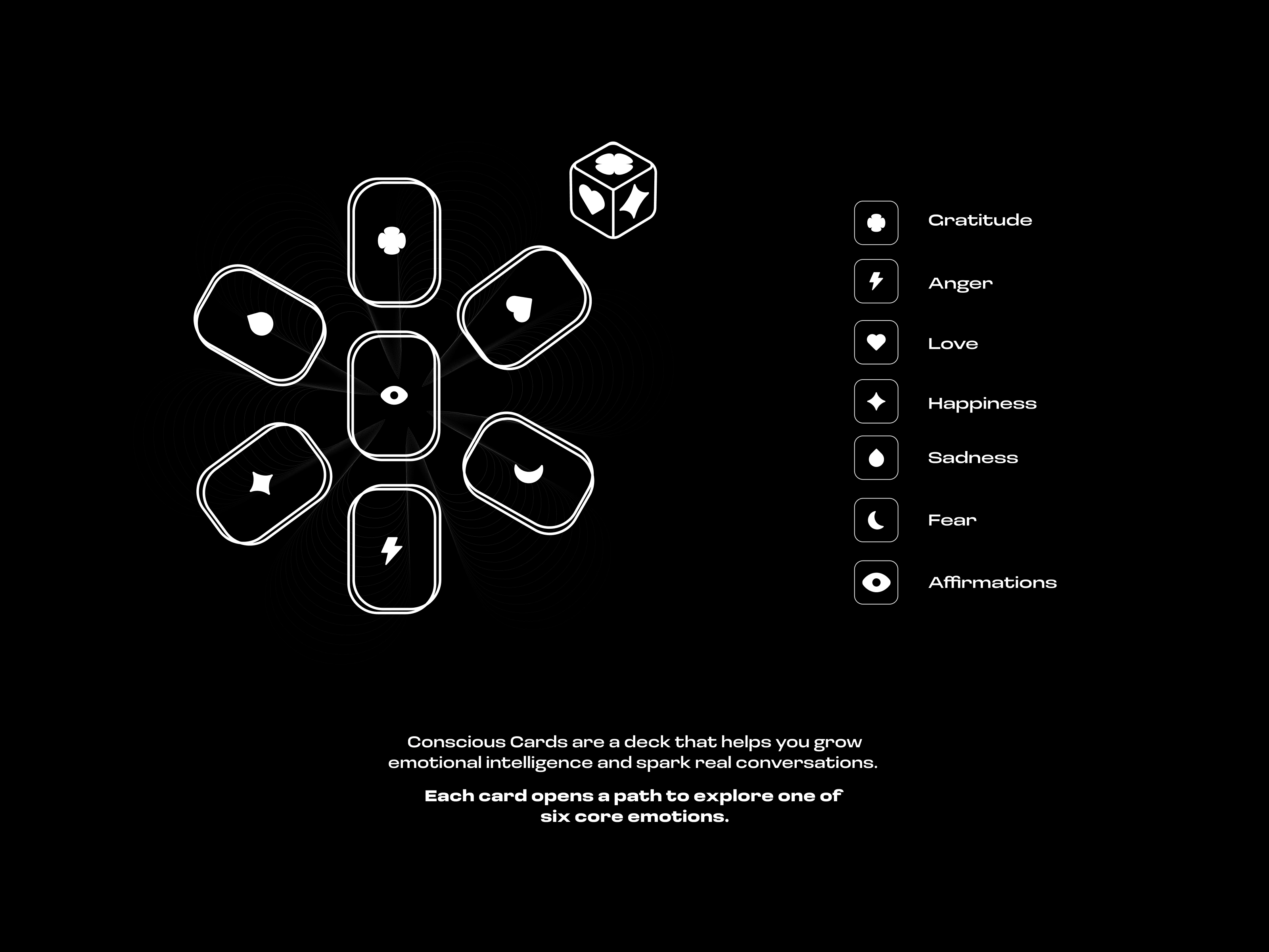In a world where digital connection often leaves people feeling more isolated, I designed Conscious Cards as a tool to bring back the ancient practice of gathering, sharing, and listening. Inspired by how our ancestors exchanged stories in circles, the cards invite people to slow down, reflect, and rediscover genuine face-to-face connection.
