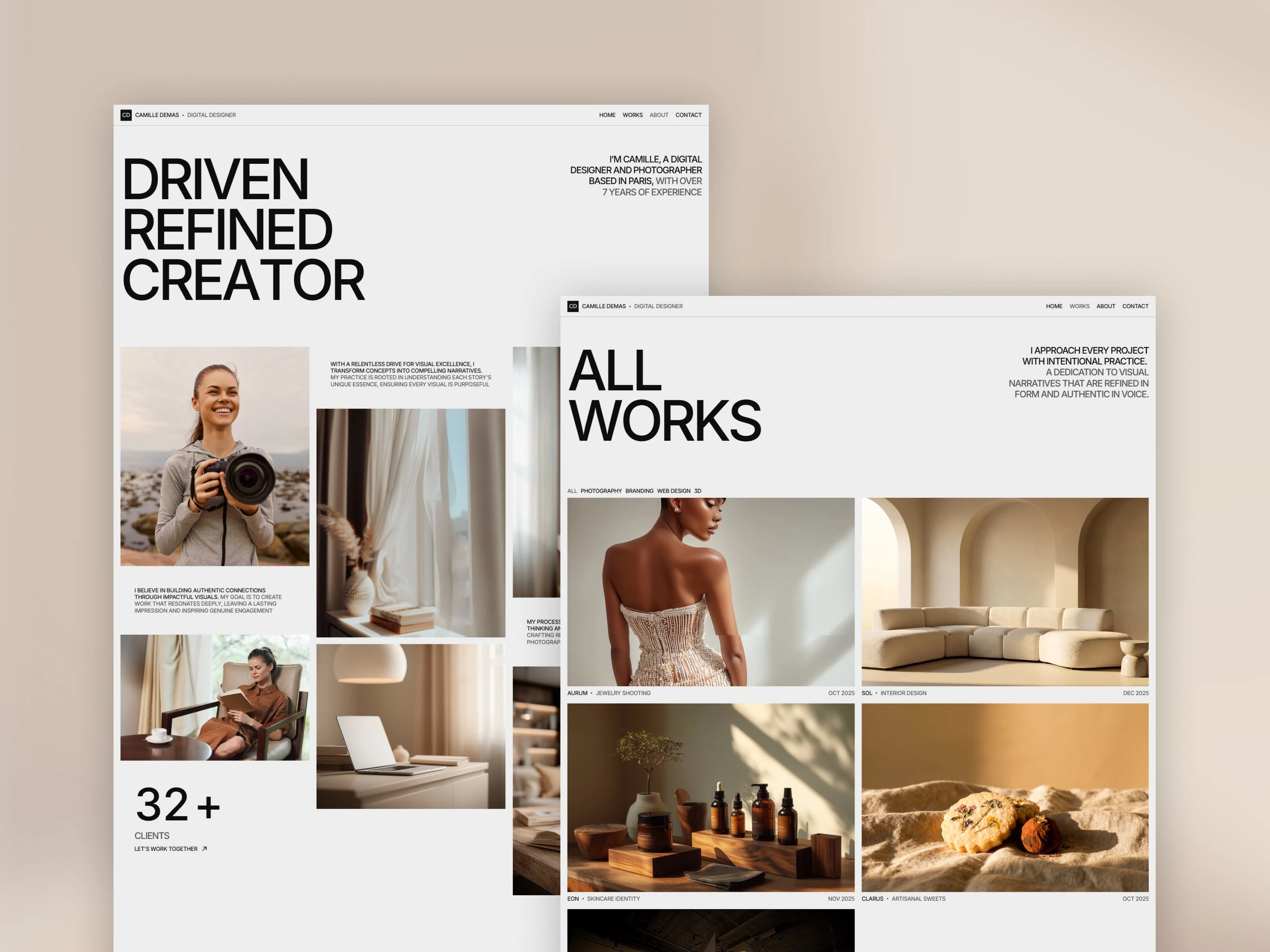 Vanilla is a premium portfolio template for photographers and designers. With a warm, minimalist aesthetic and powerful CMS support for Video & Images.