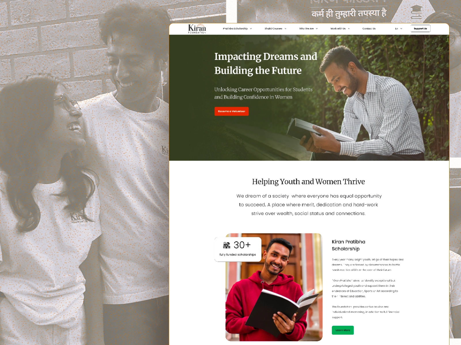 Kiran Foundation came in a challenginf situation because their website redesign was failing to communicate their incredible mission. The existing approach was text-heavy, structurally chaotic, and completely missing the human story behind their transformative educational work. They needed to attract mentors and secure funding while showcasing real impact.