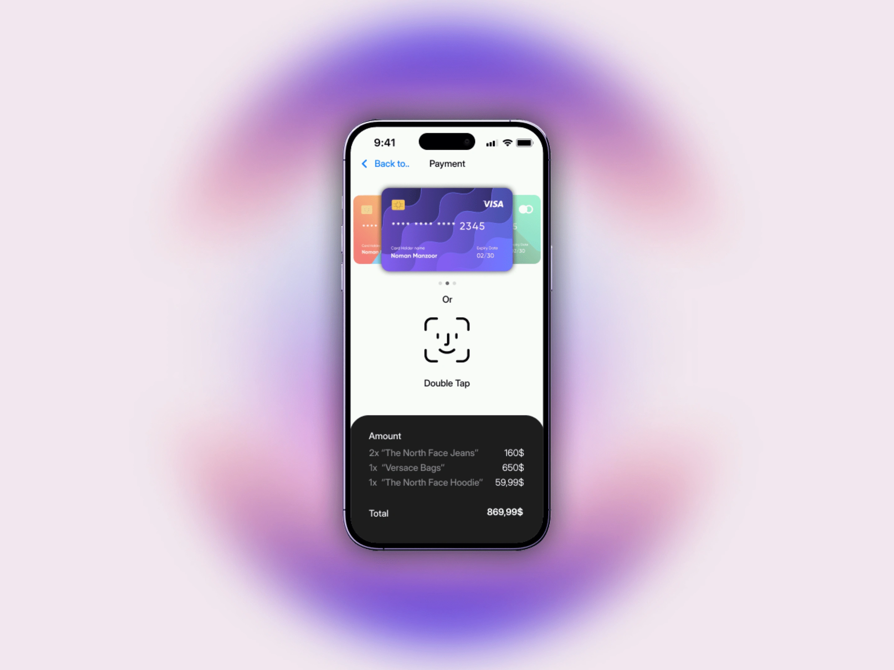 Designed a mobile payment UI with secure card input, order summary, and confirmation screen, providing a seamless and intuitive checkout experience.