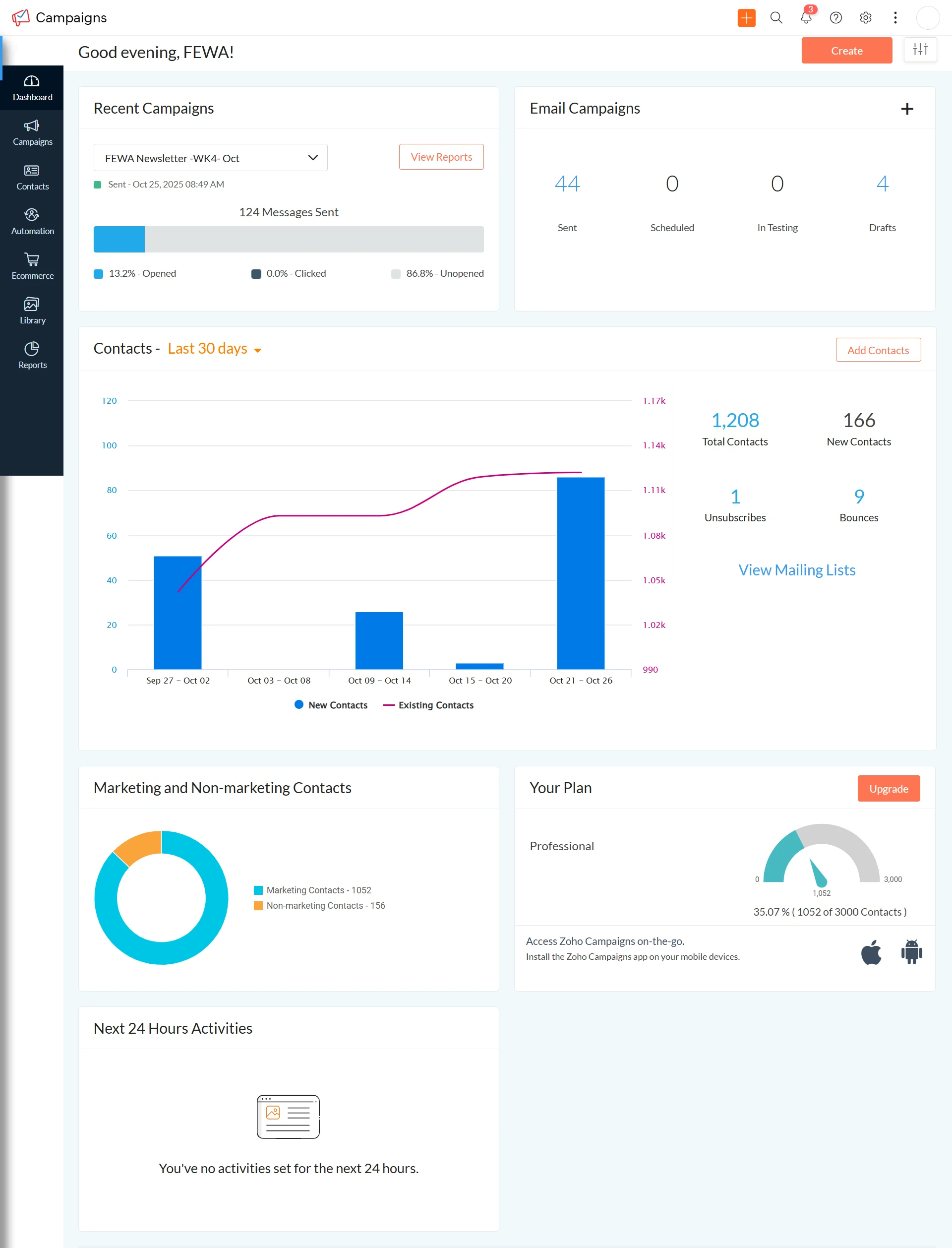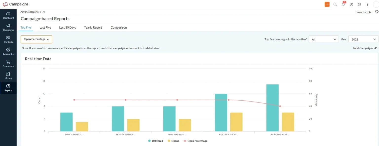 Zoho CRM, Zoho Campaigns, Zoho Mail, Zoho Forms, Google Analytics, Google Sheets