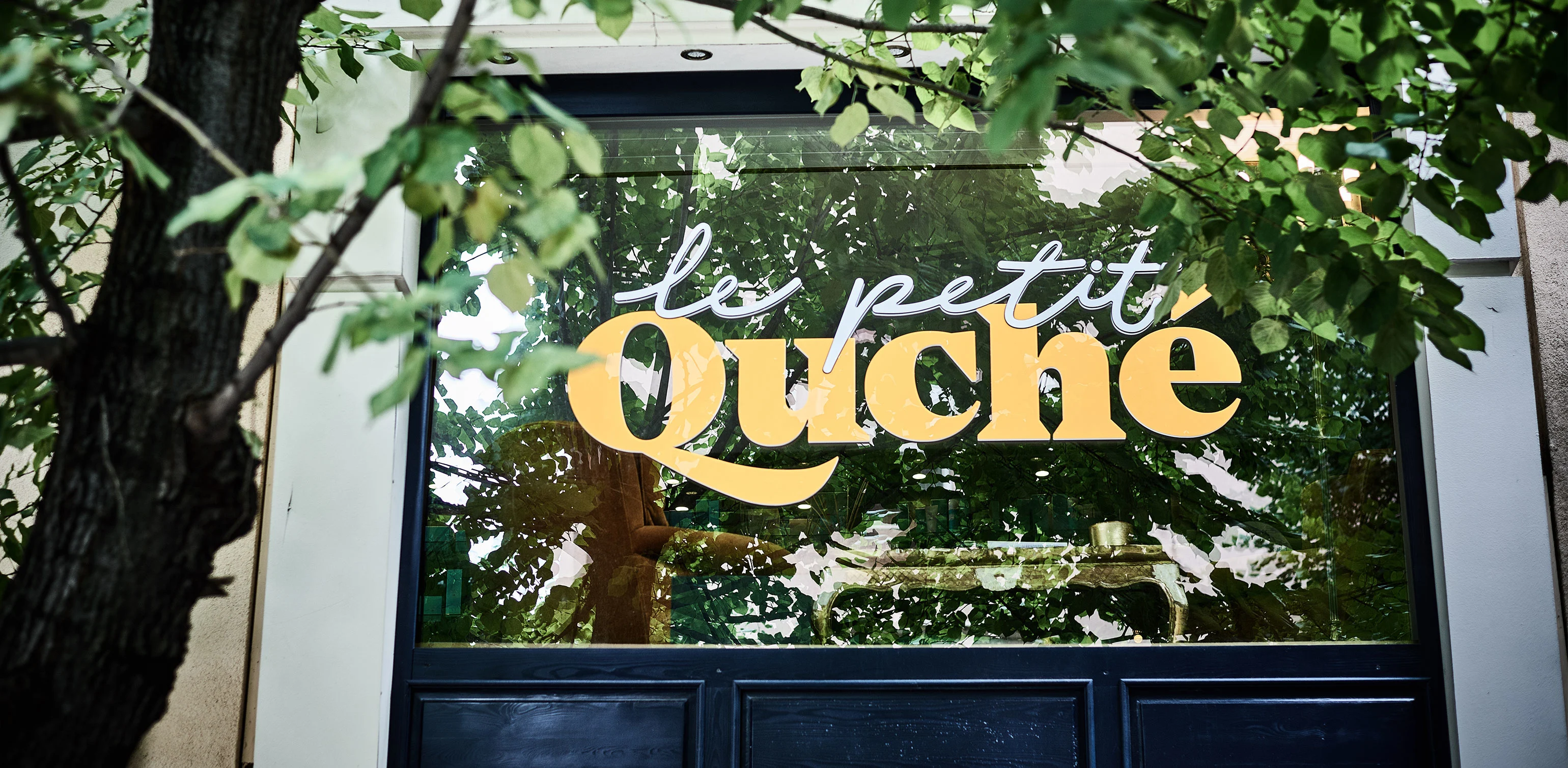 Le Petit Quché's design blends elegant serif with handwriting. A yellow and royal blue palette creates a modern, authentic luxury vibe.