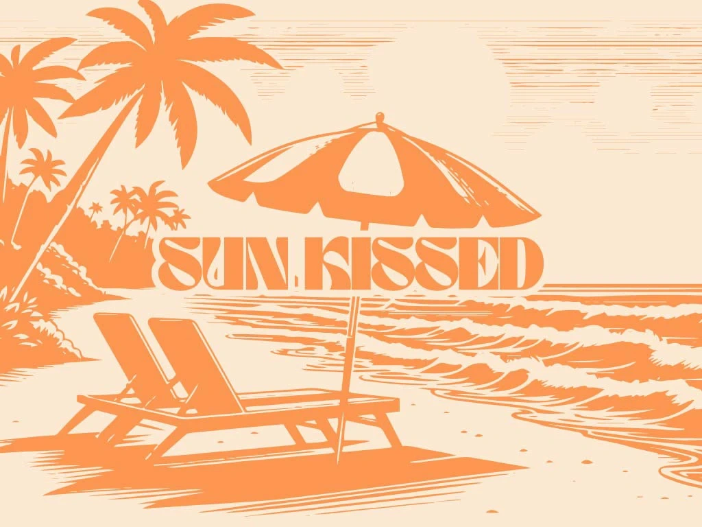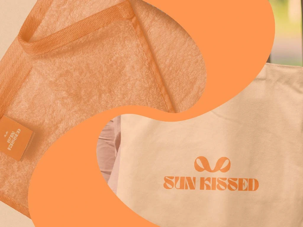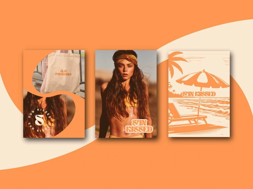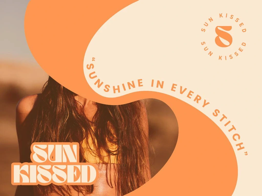 "Brand identity design for swimwear brand with a warm, sun-drenched aesthetics. Includes logo design and other brand applications."