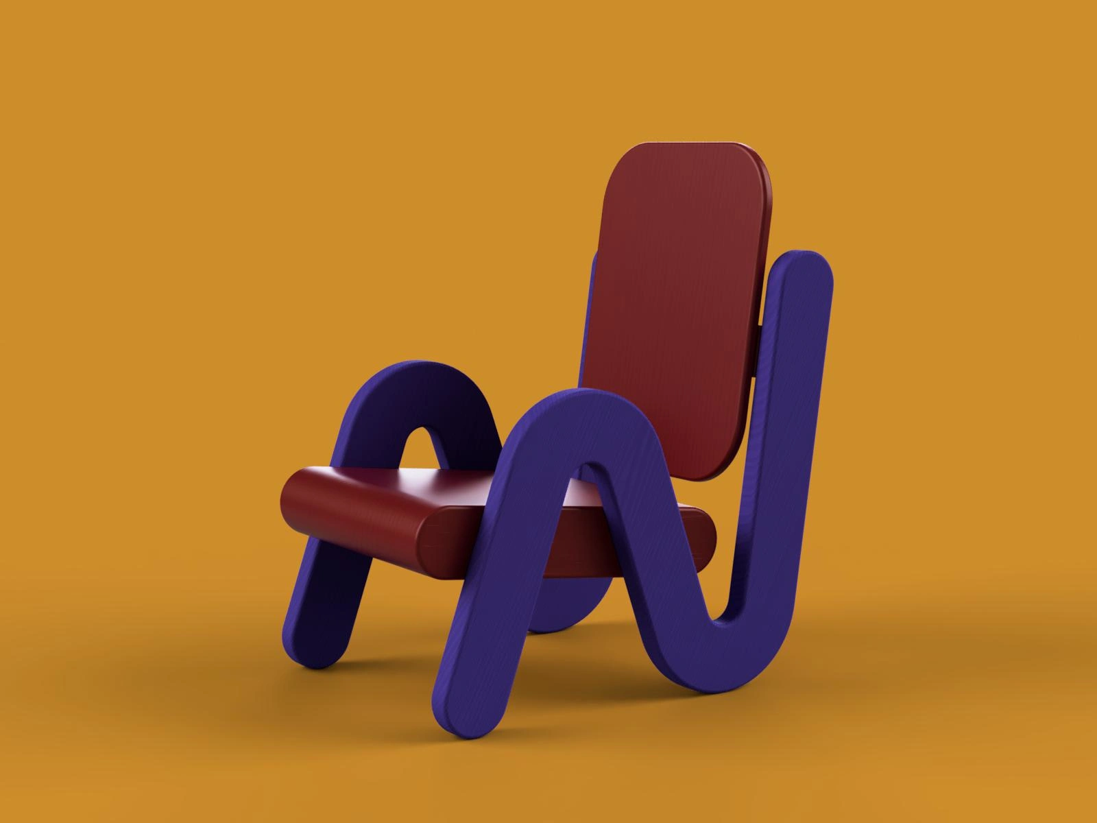 Using the graphic shape of a squiggle to define the structure of a chair. A simple sculptural chair to complement a playful space.