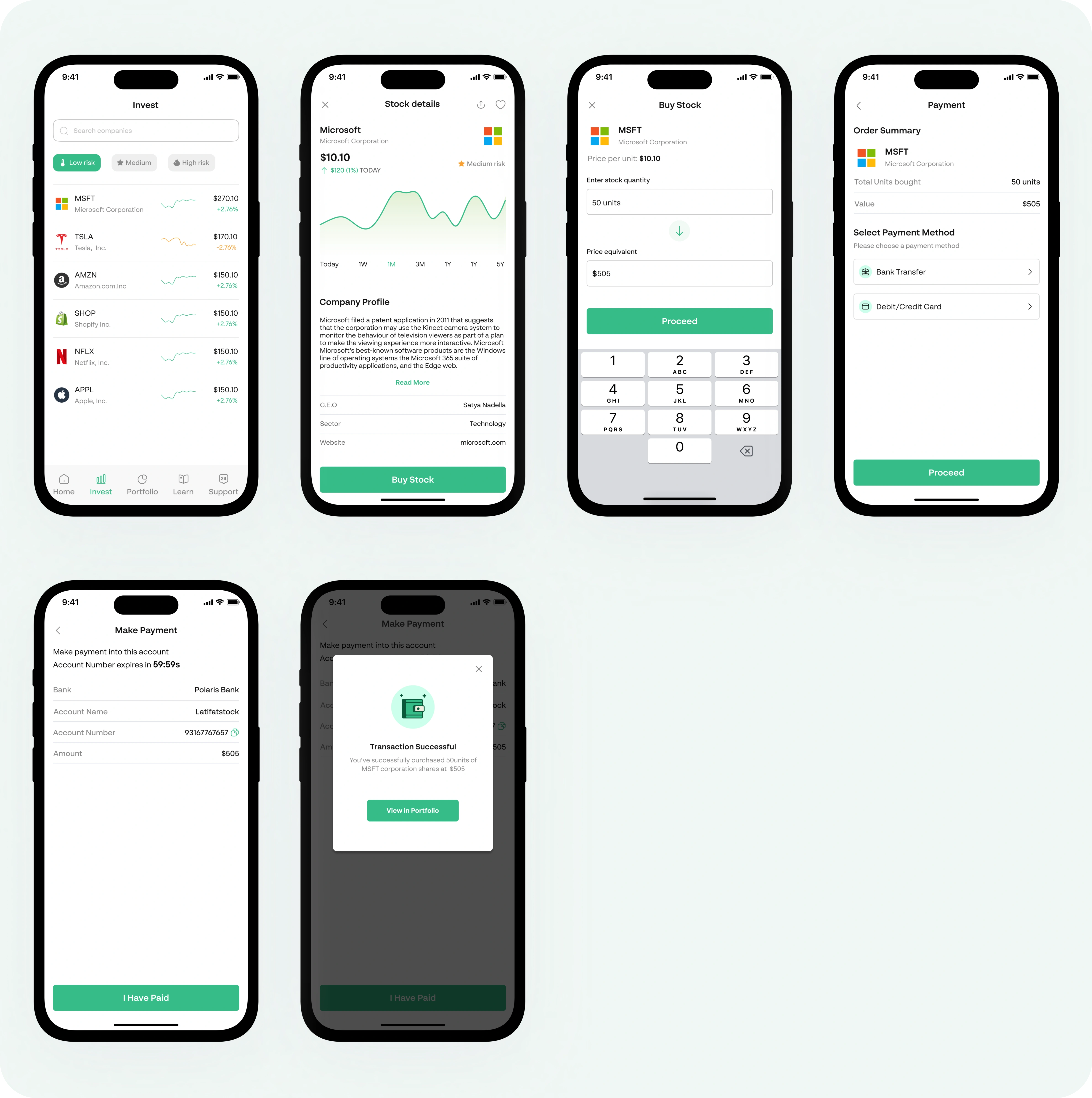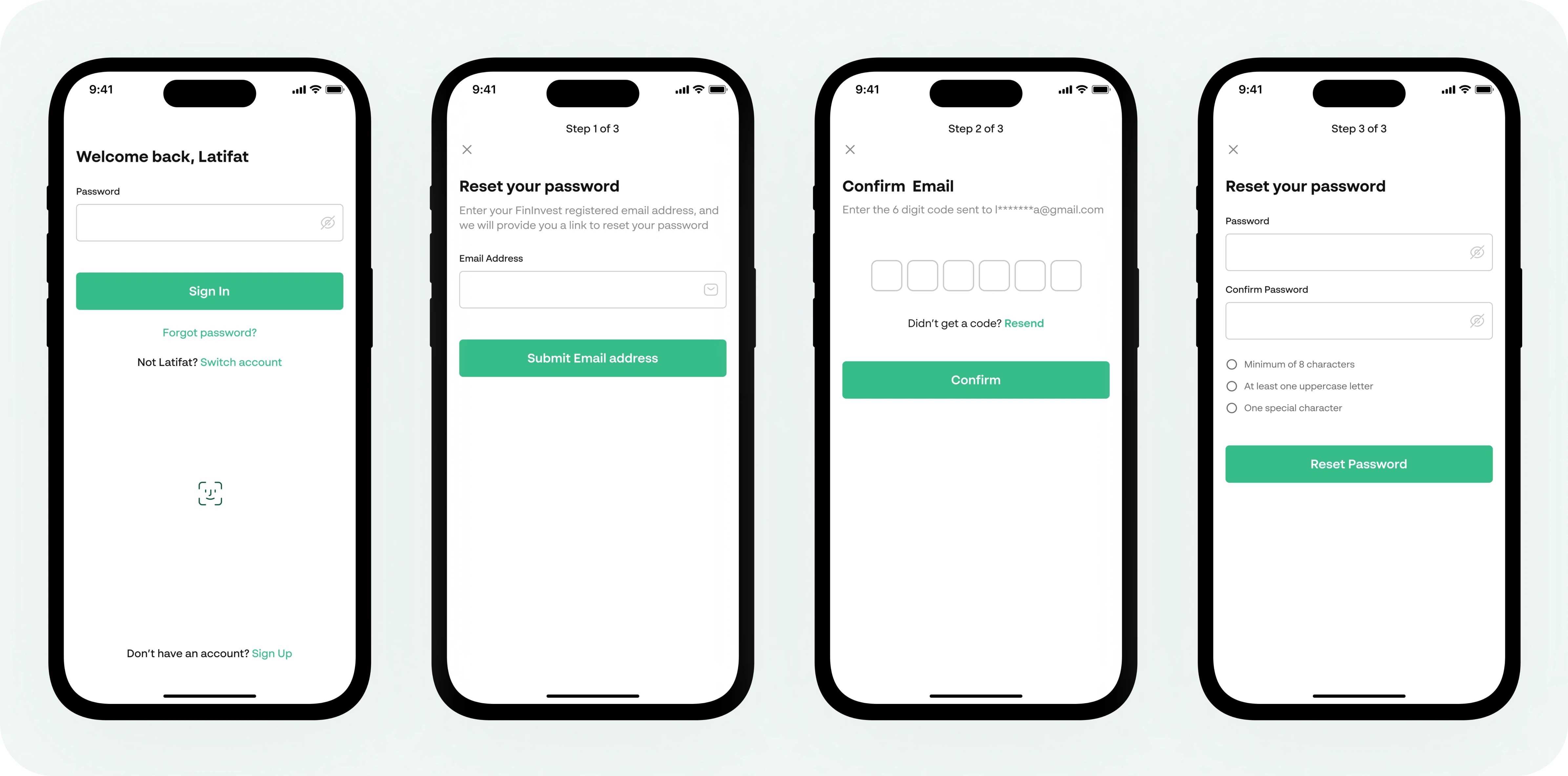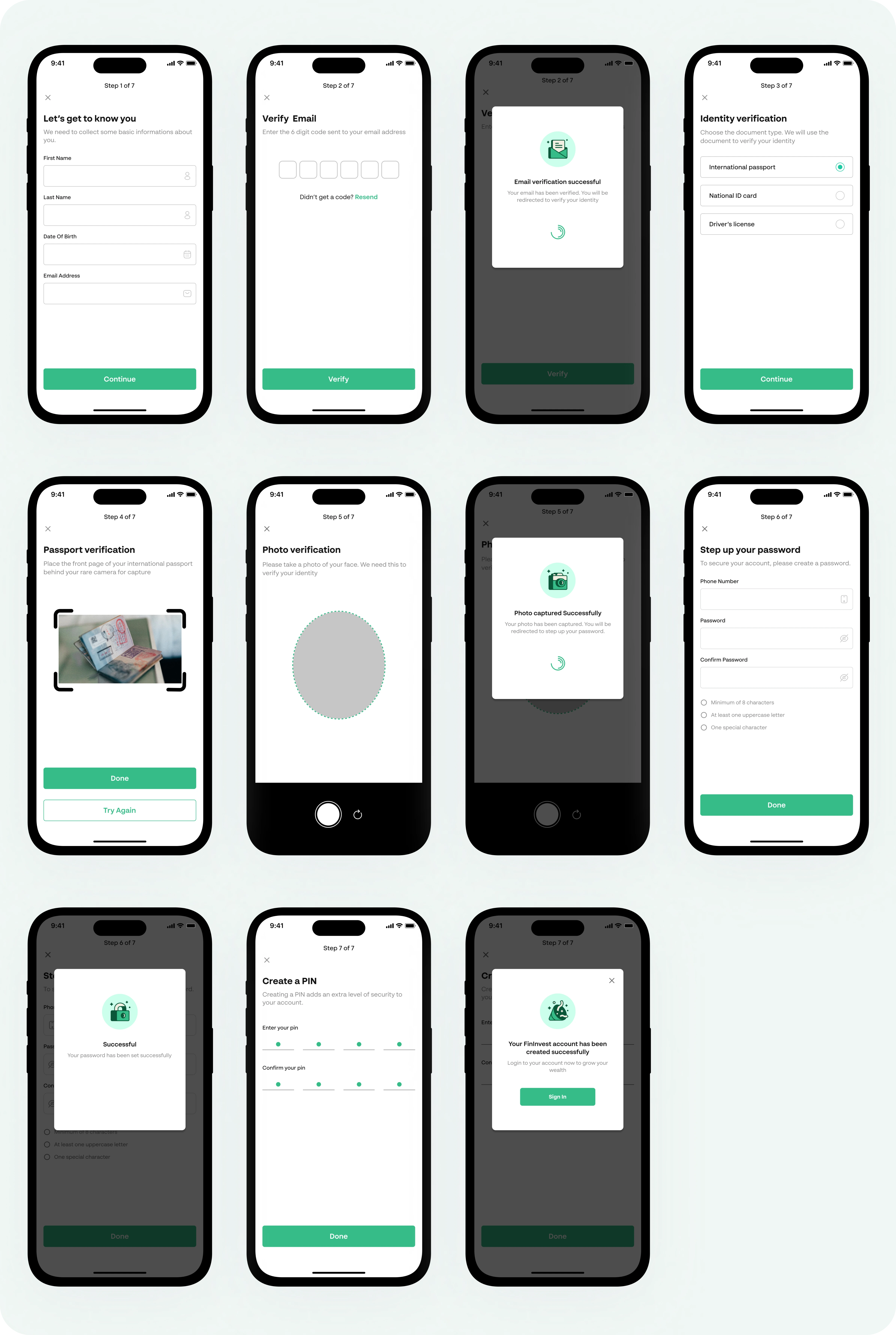 One of the key pain points identified in user research was the tedious KYC process on investment apps. To address this, the FinInvest KYC process was carefully designed to balance security and user experience. The process captures essential details for maximum security while remaining straightforward, simple, and user-friendly. Given the importance of security in FinTech, this approach ensures a seamless KYC experience without compromising on safety.