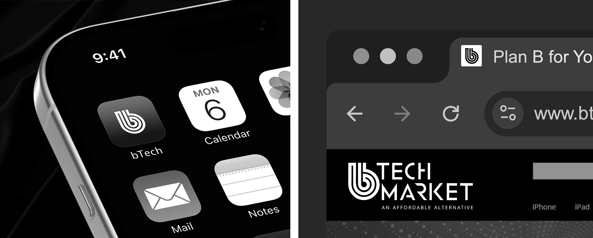 The logo was inspired by the concept of “Plan B” — a smart and sustainable alternative for those who may not be ready to invest in a brand-new device, yet still seek reliability, quality, and affordability. The letter “b” in bTech serves as a powerful symbol: it represents both the idea of a clear target and the right alternative — the choice that leads to true value.