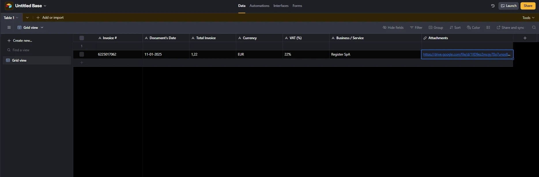 I wanted to create a fully automated system that could read invoice emails, extract the right data, and organize everything in one place.