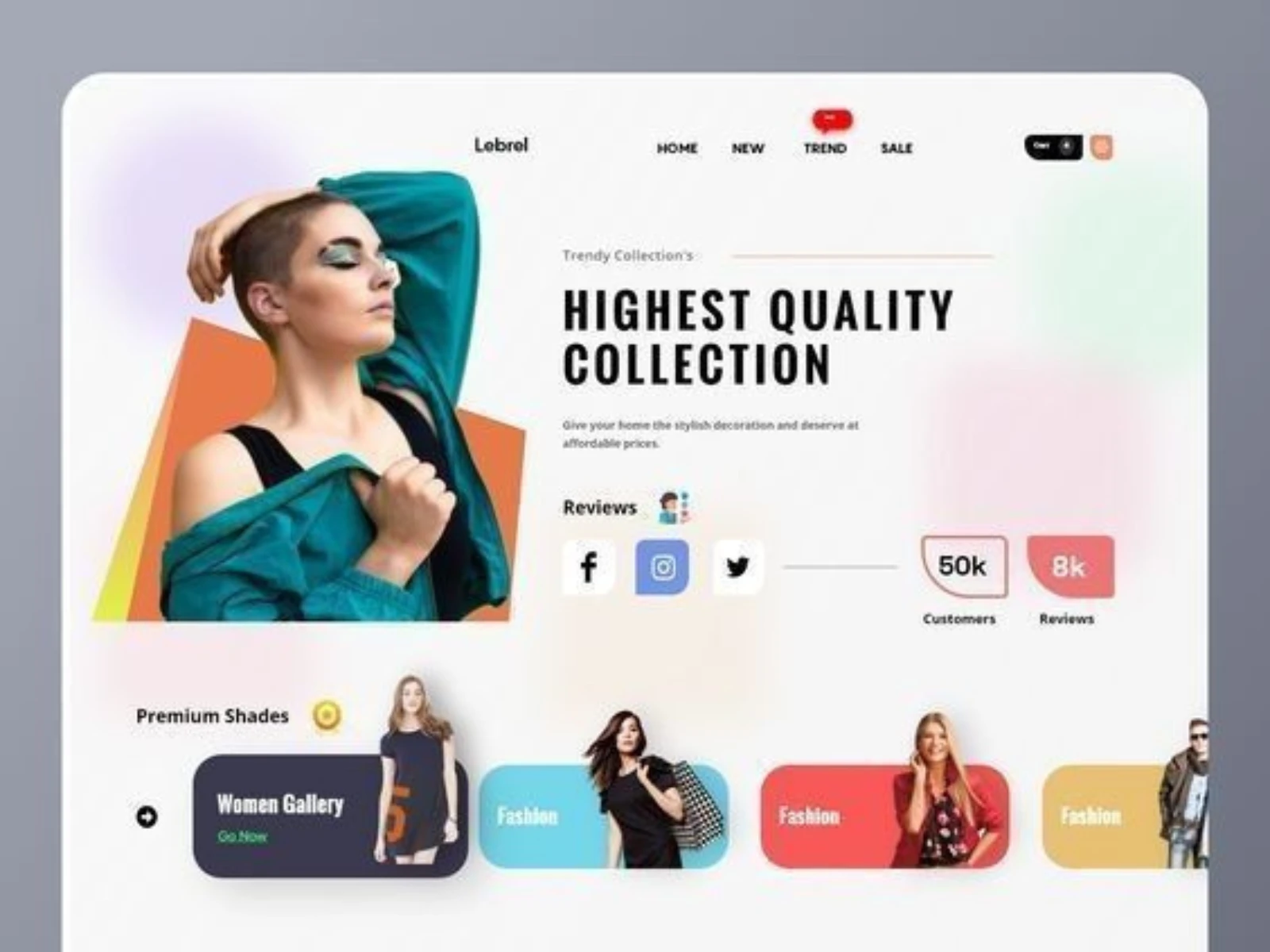 Bold hero section, dedicated customer reviews/stats, clear calls-to-action for product galleries, and easy navigation for a seamless shopping experience.