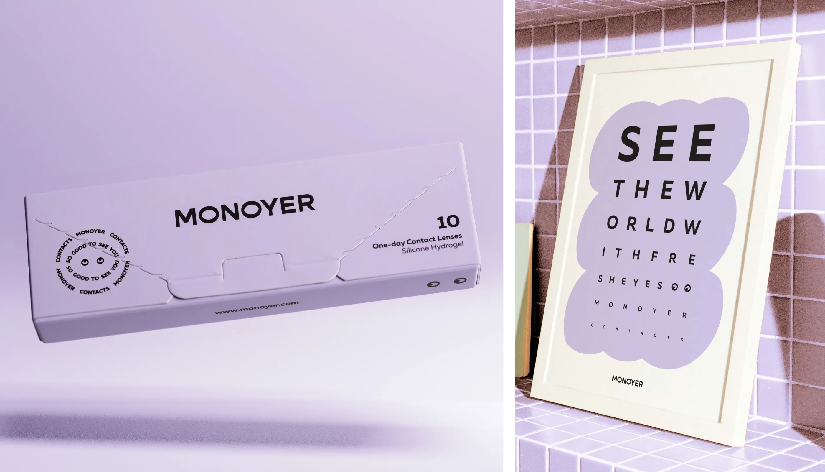 We built the brand from the ground up - strategy, brand identity, packaging, and messaging. Aimed at a younger, active audience, Monoyer repositions lenses as part of modern life rather than a medical fix. Contact lenses are not just a product to get through the day - they’re part of the little routines and the big moments - so we created a brand that celebrates the freedom of seeing clearly, wherever life takes you.
