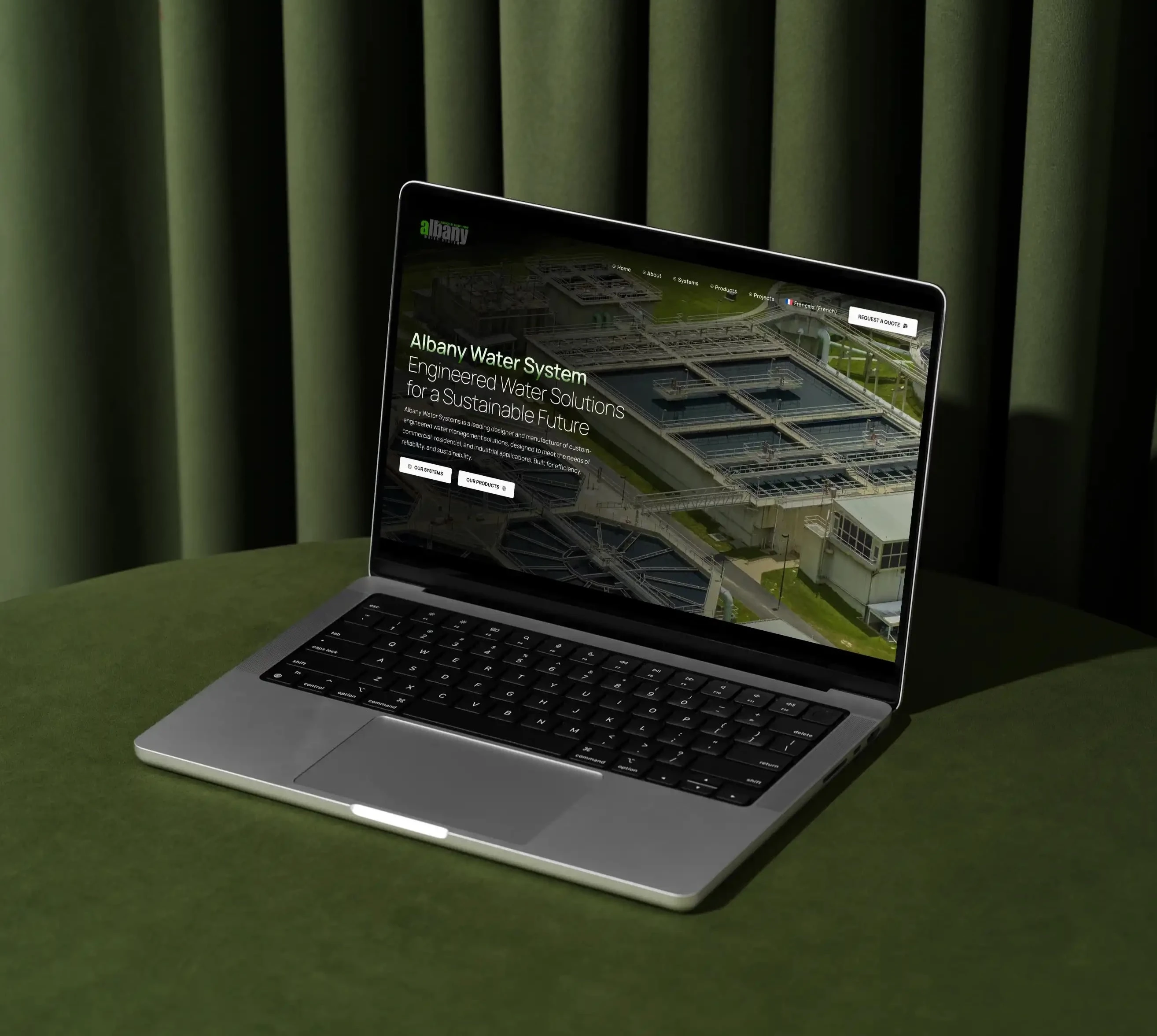 The final result is a polished, brochure-style website that explains what Albany Water does before any sales conversation begins, helping them build trust and make a strong first impression 24/7.