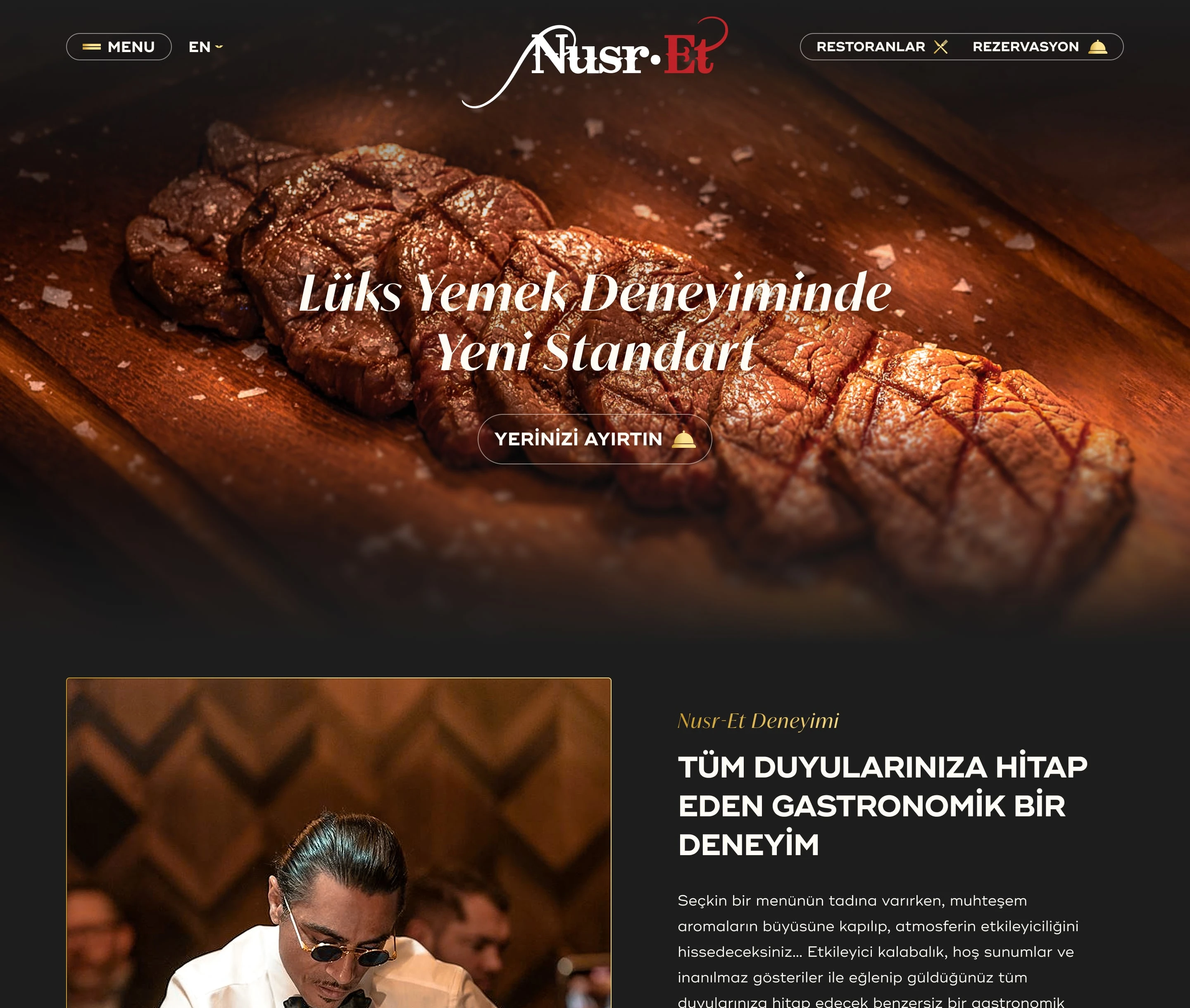 Nusr-Et is a globally recognized luxury dining brand defined by its premium steakhouse experience and distinctive identity. The goal was to create a digital presence that reflects the same level of refinement, exclusivity, and confidence found in its physical restaurants.