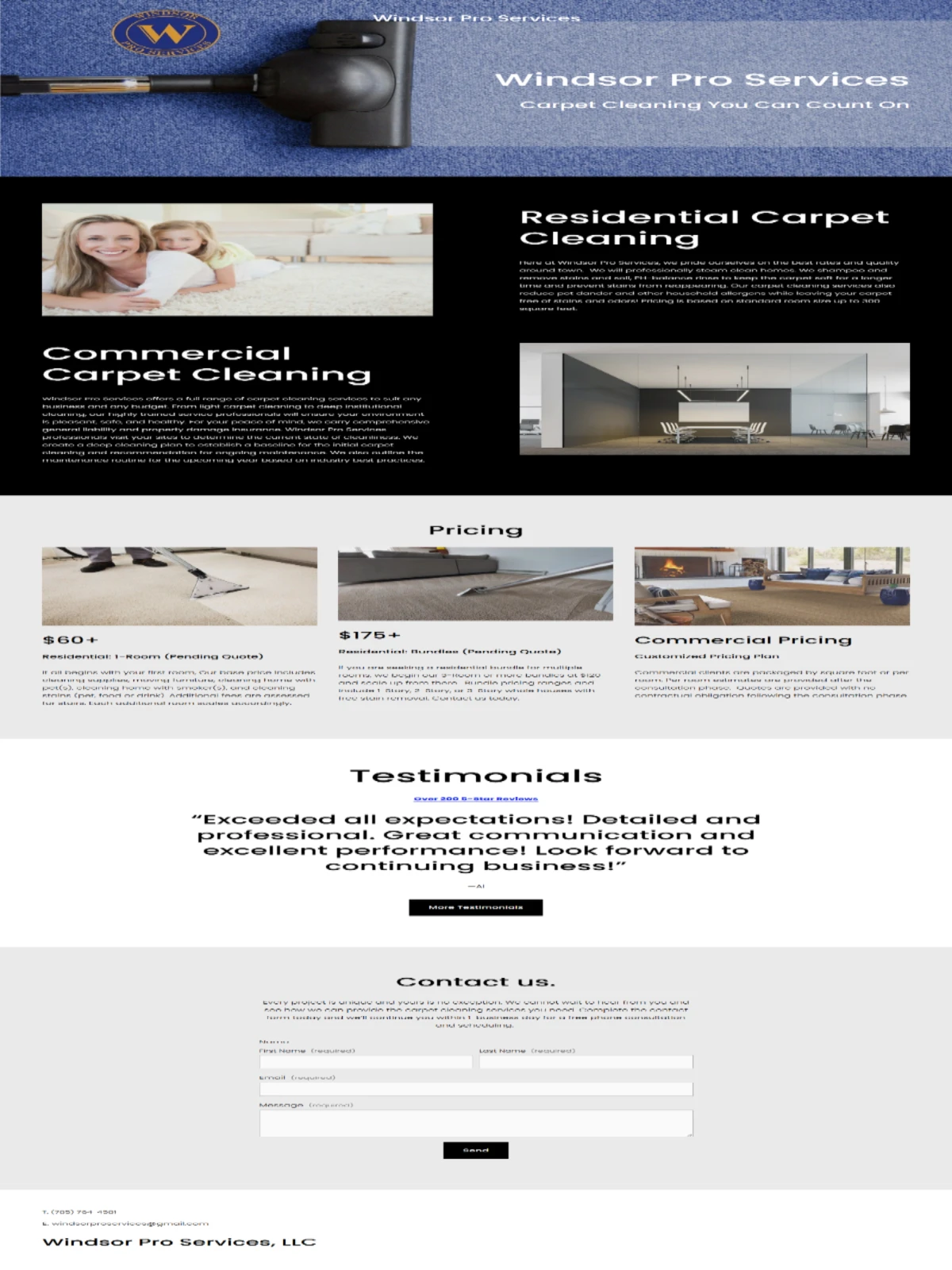 Clean, professional Squarespace website designed for a local carpet cleaning business. Focused on building trust through testimonials and driving quality leads.