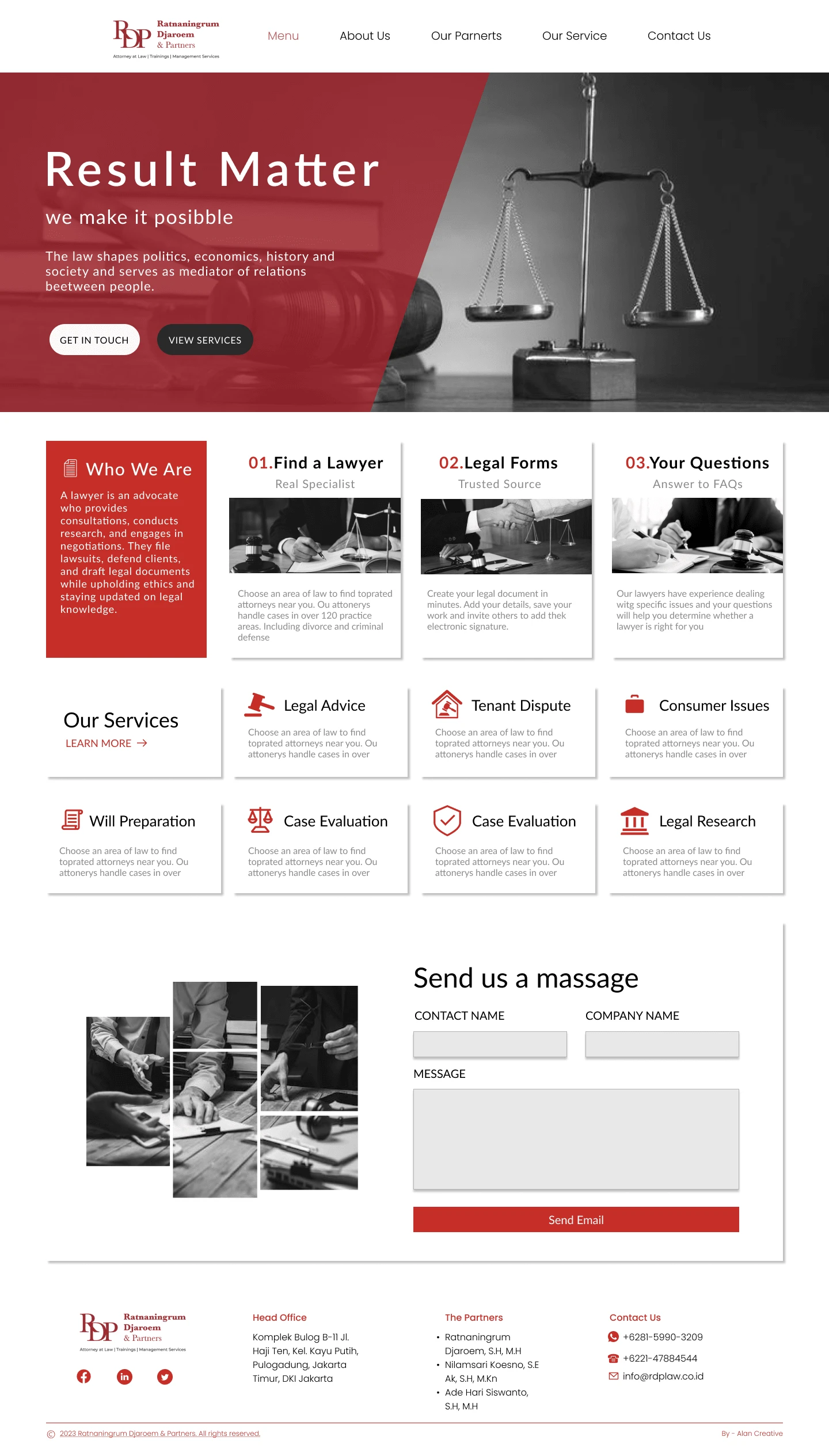 "The UI/UX project for Ratna Djarum & Partners' law firm website involves a meticulous approach, focusing on every detail. We begin by thoroughly understanding the company's vision and values.