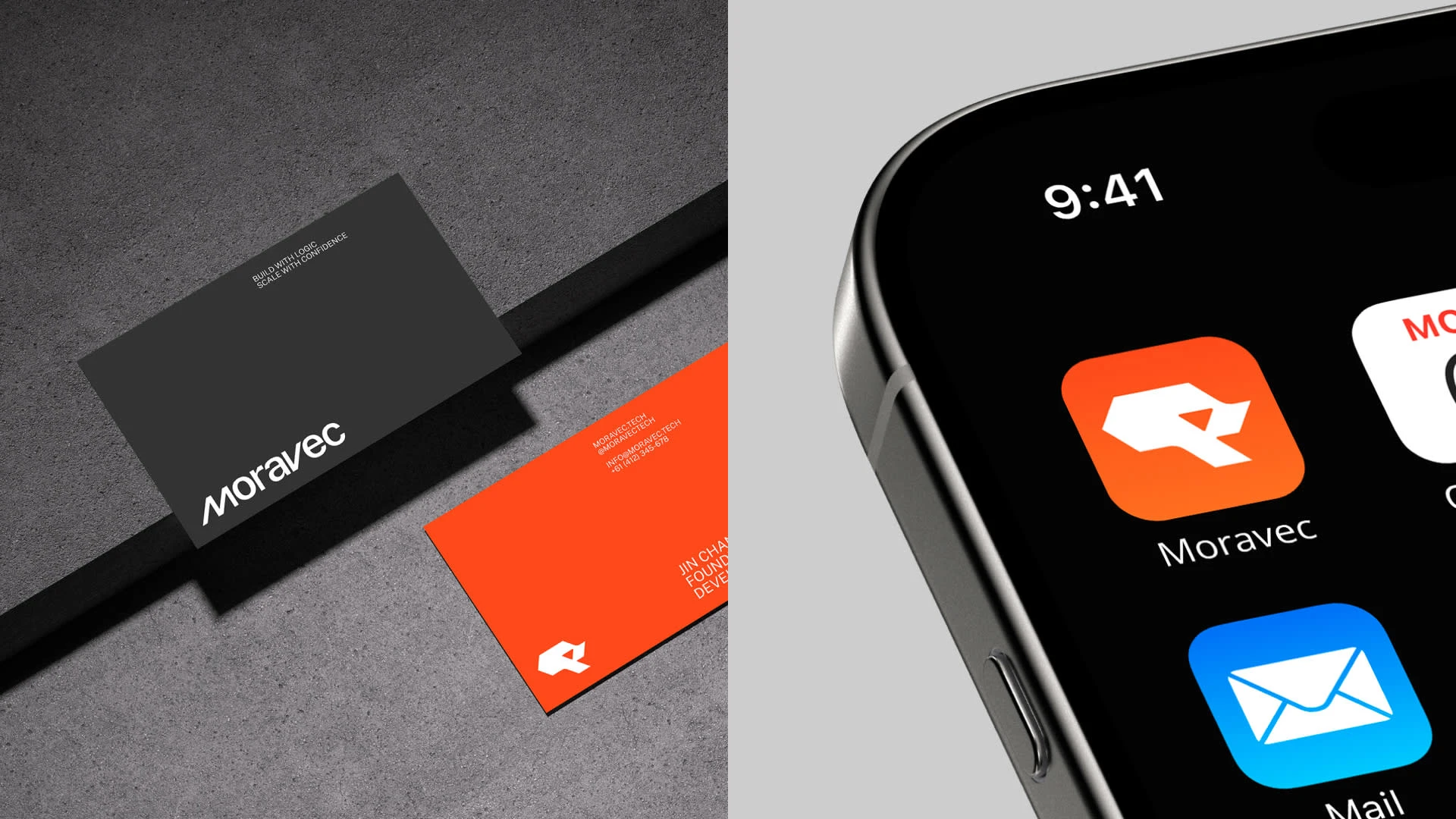 Designed for a developer ready to grow beyond freelancing, the brand pairs minimal aesthetics with technical precision, capturing the calm, considered approach Moravec brings to complex digital challenges.