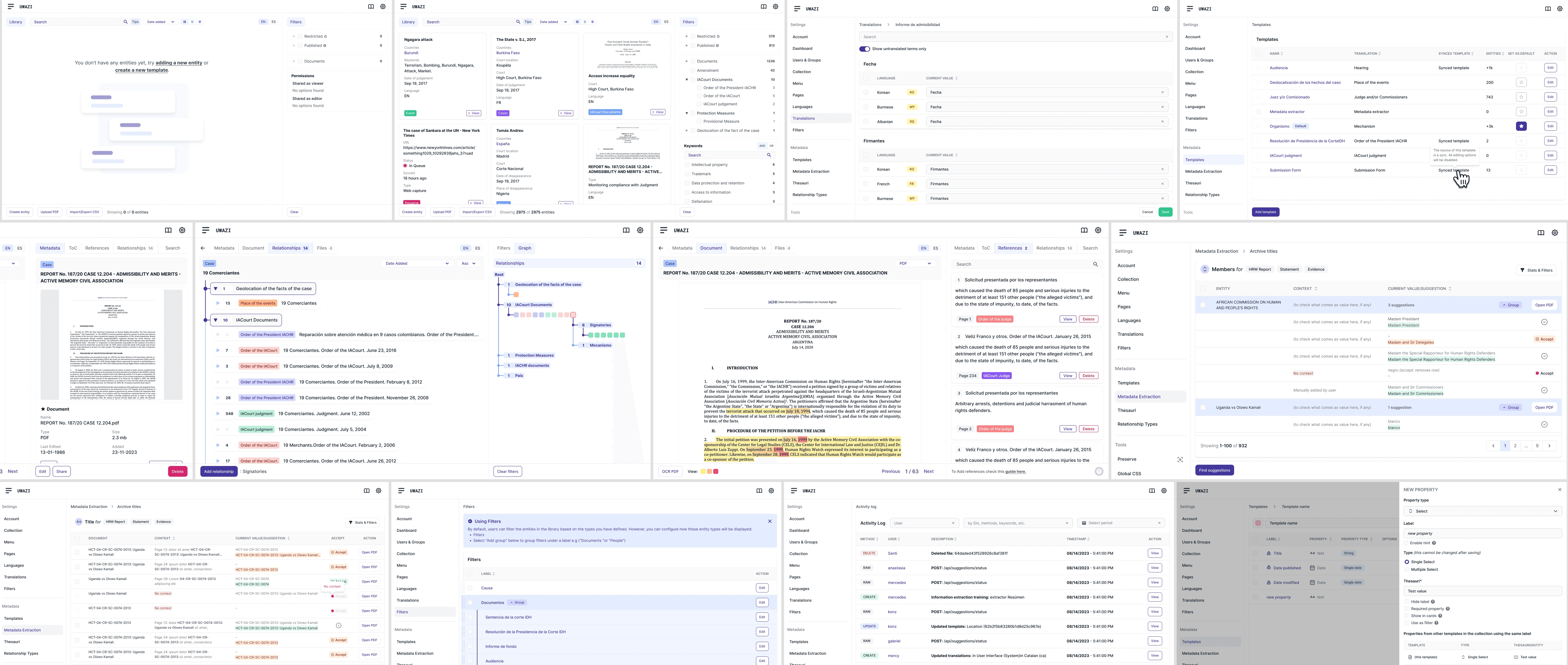 Redesigned Uwazi's UI for clarity and scalability, delivering a cohesive design system and improved user-flows.