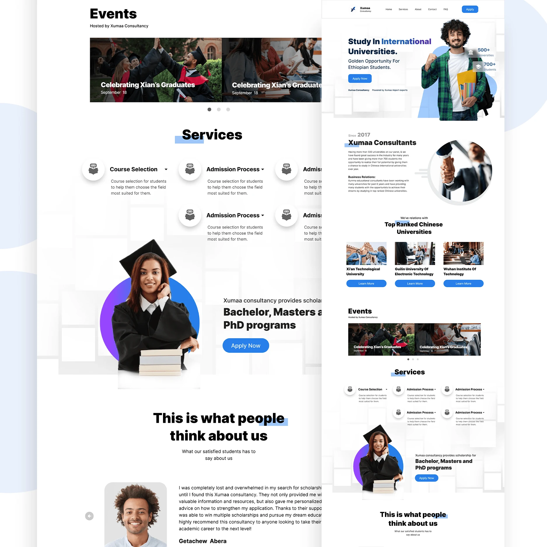 This project involves designing and developing a comprehensive website for an educational consultancy company, which provides a range of services including academic advising, career counseling, college admissions guidance. The goal is to create a user-friendly, visually appealing, and informative website that effectively communicates the company's services and values to prospective students and their families.