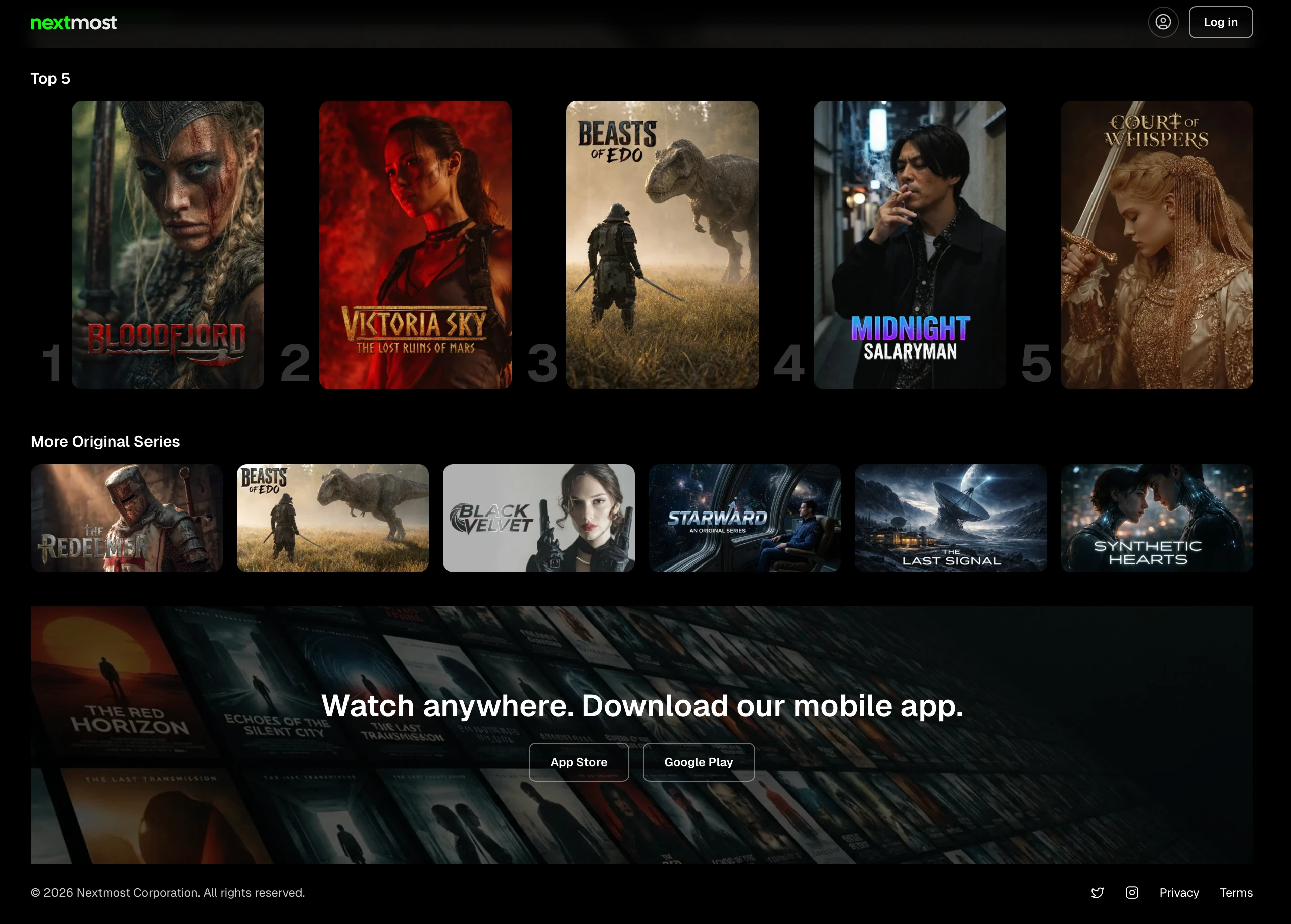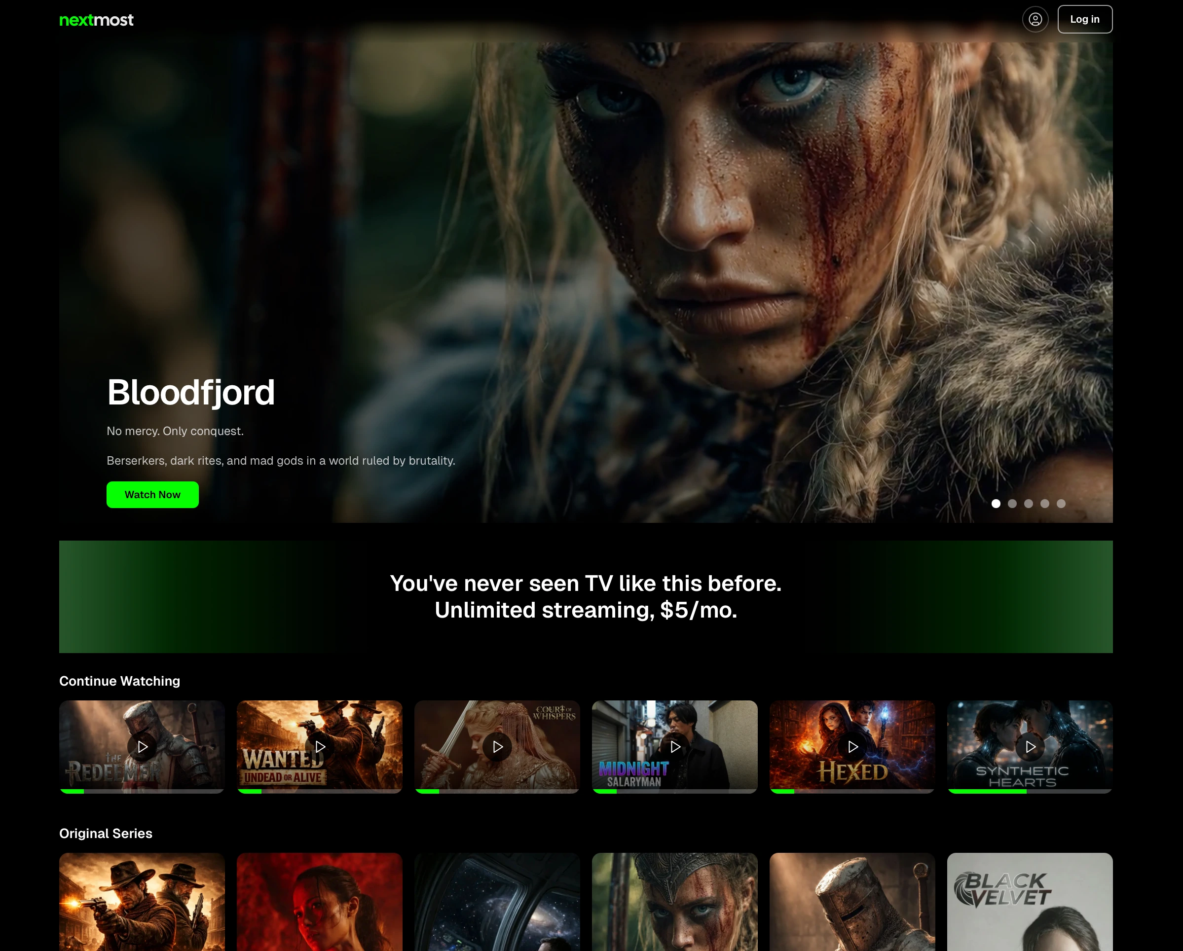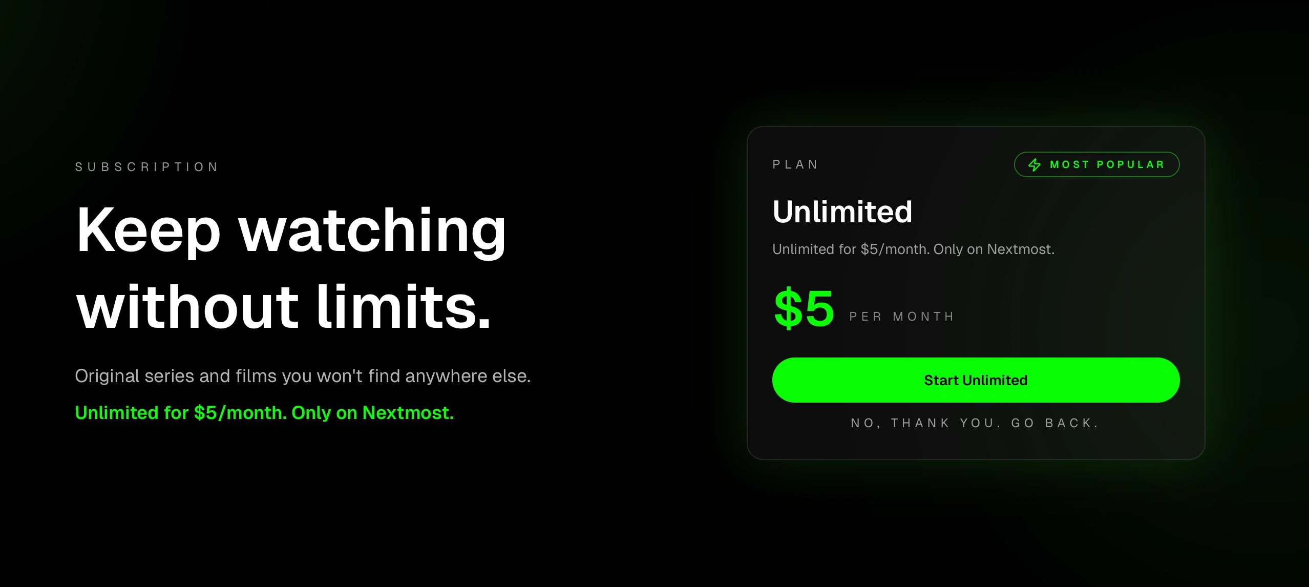 Streaming web page implemented with Next.js Server Components, authenticated routing, subscription-based access control, and scalable image and video pipelines.