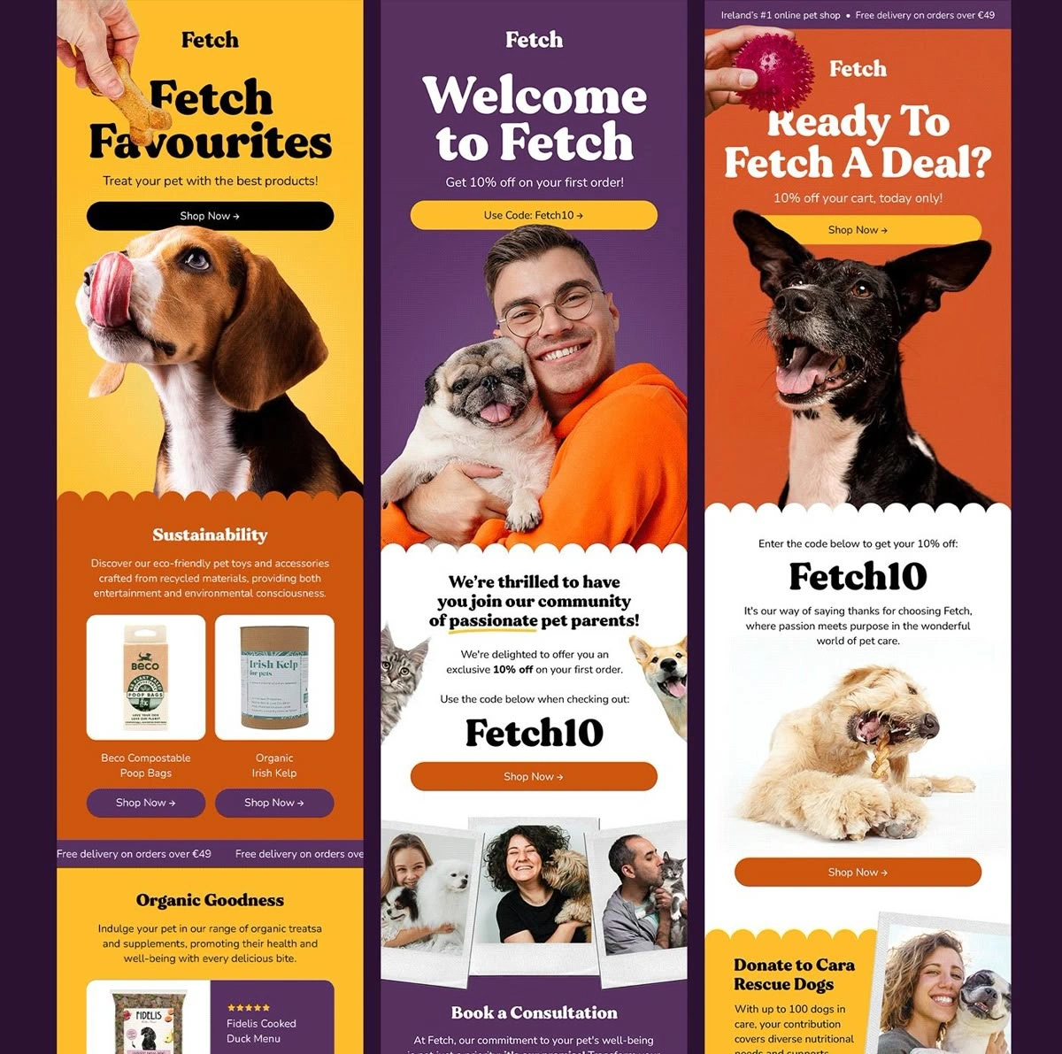 The emails included images, product shots, and icons that aligned with the brand's theme.