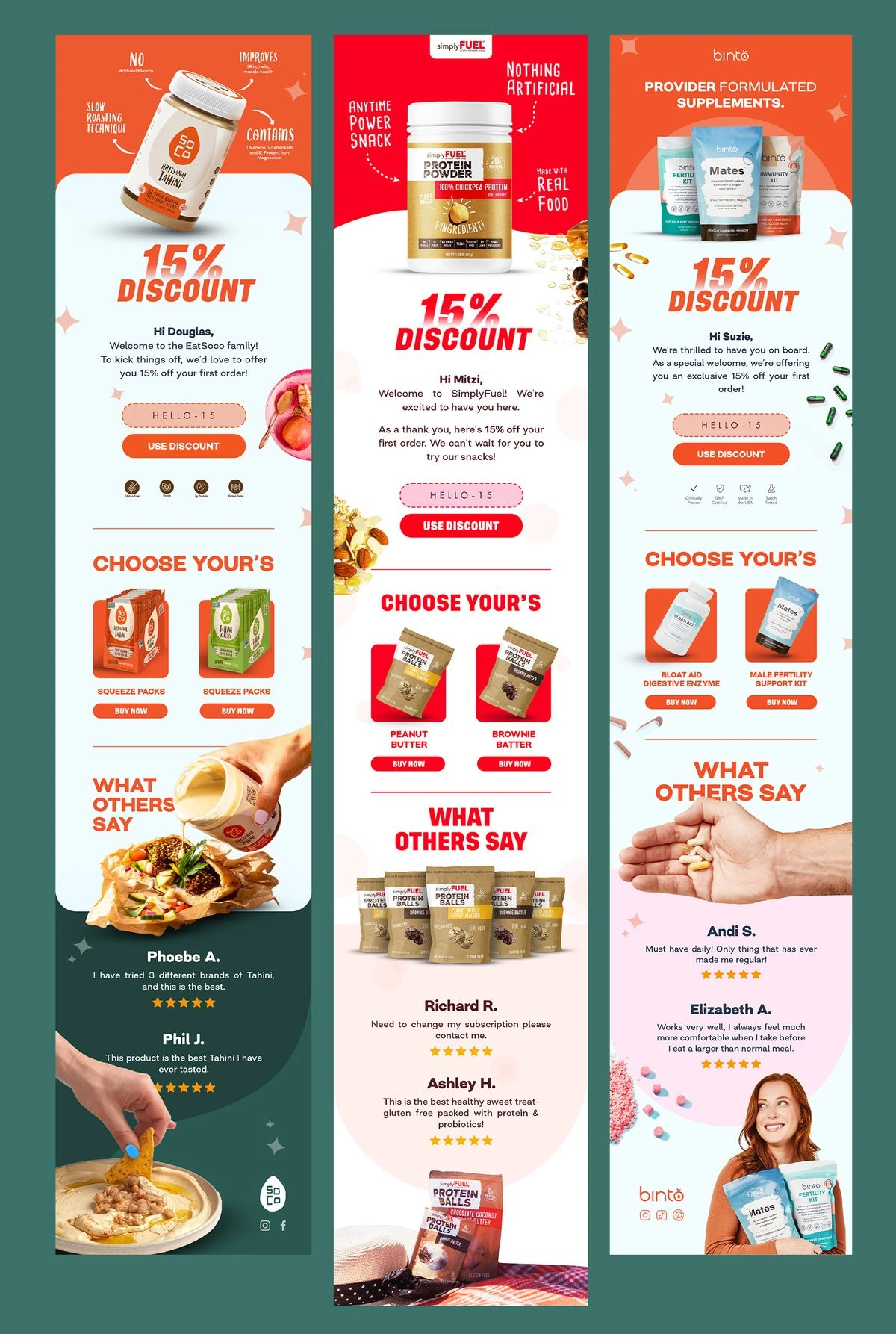 Each email design utilized the brand’s color palette and fonts, maintaining a strong visual identity.