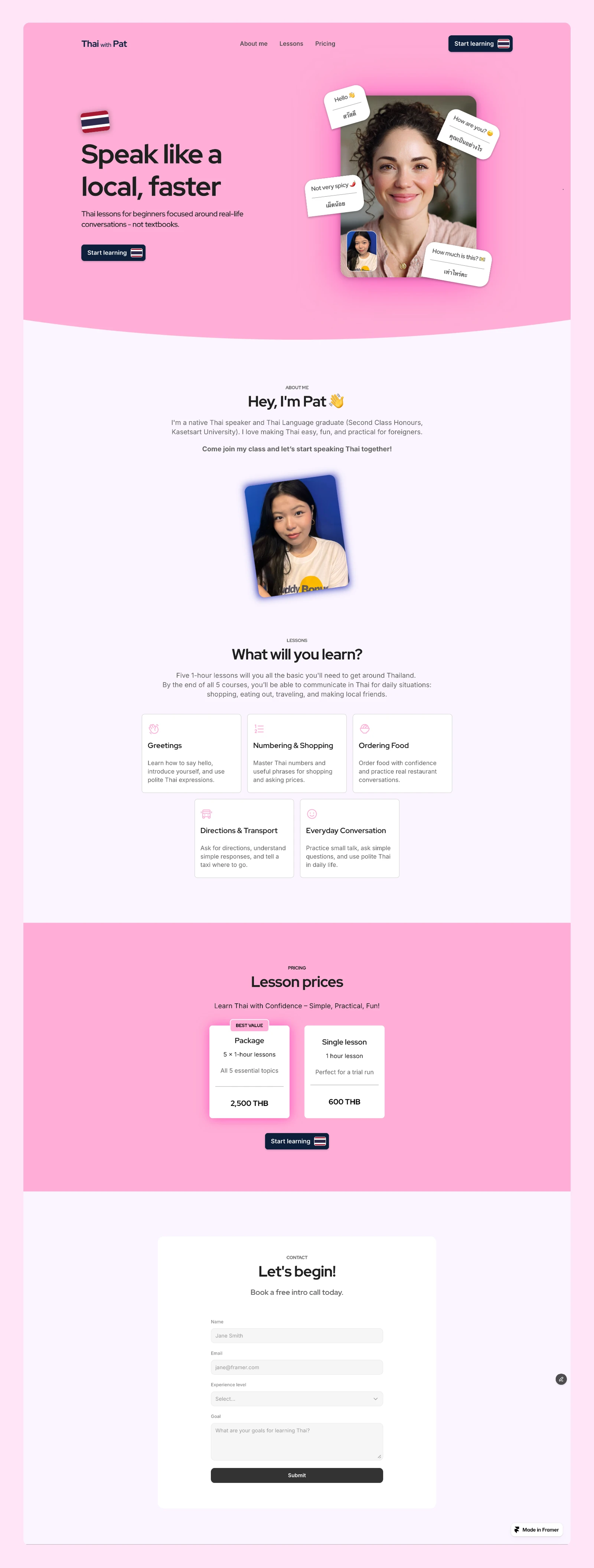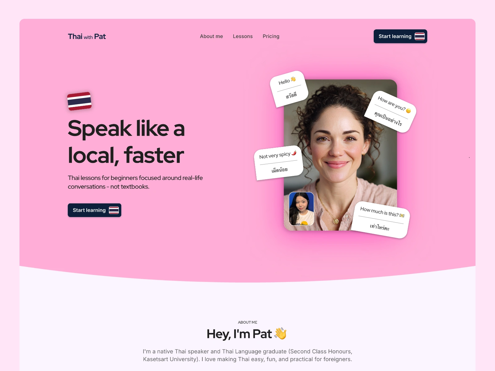 A Thai language teacher at the very start of her career wanted a simple landing page where potential students could find her and understand what she offers.