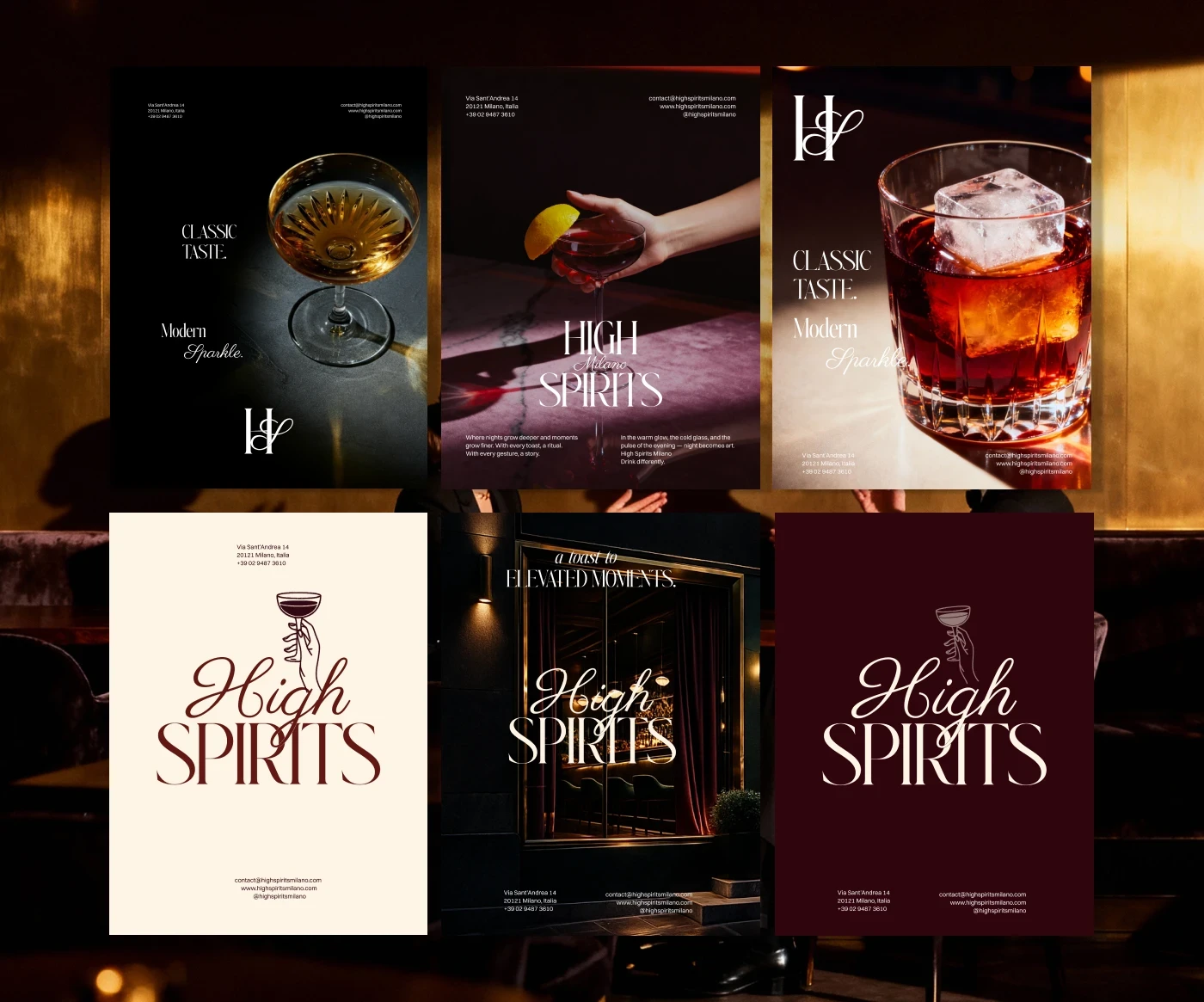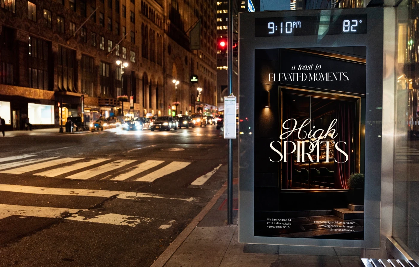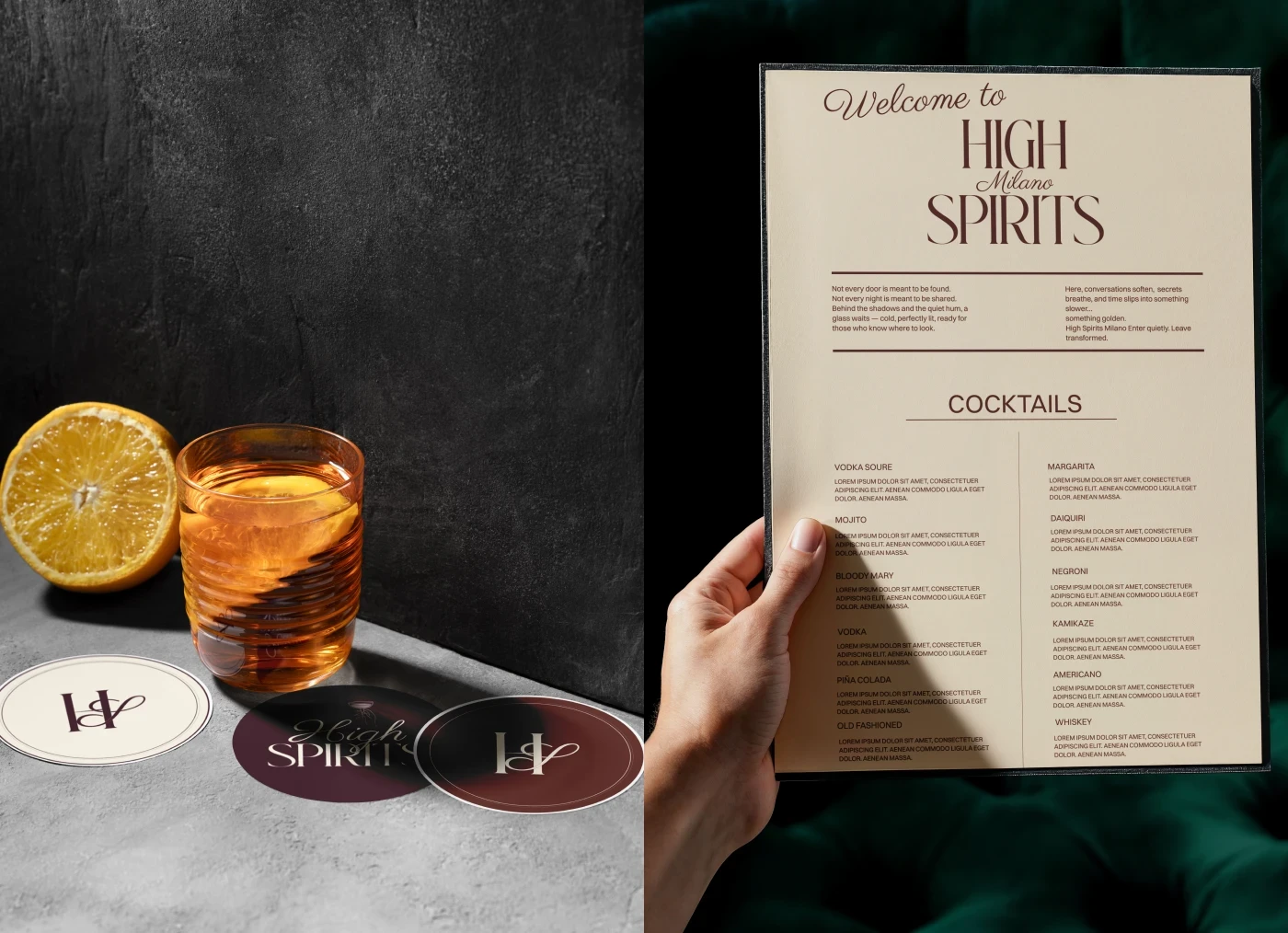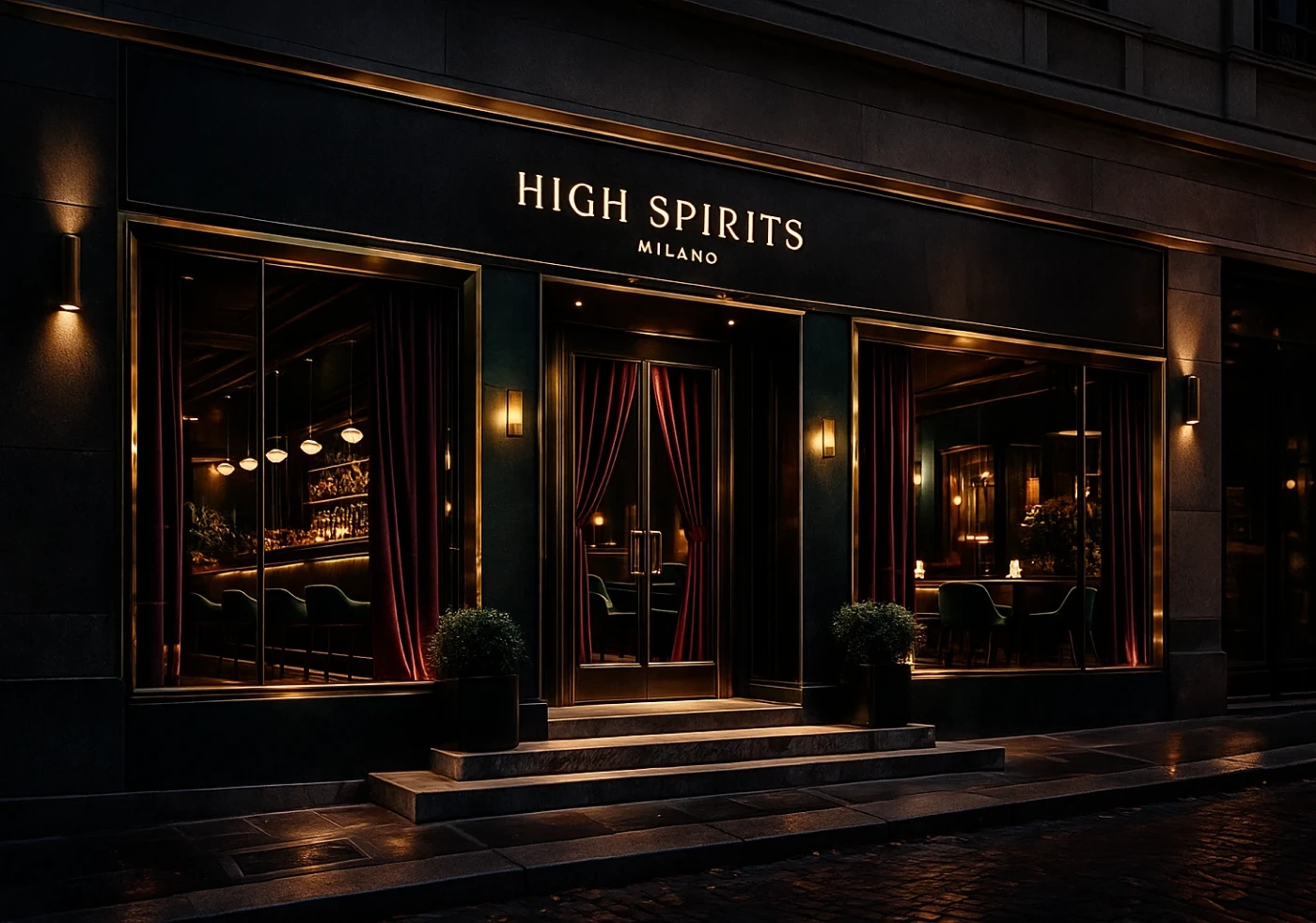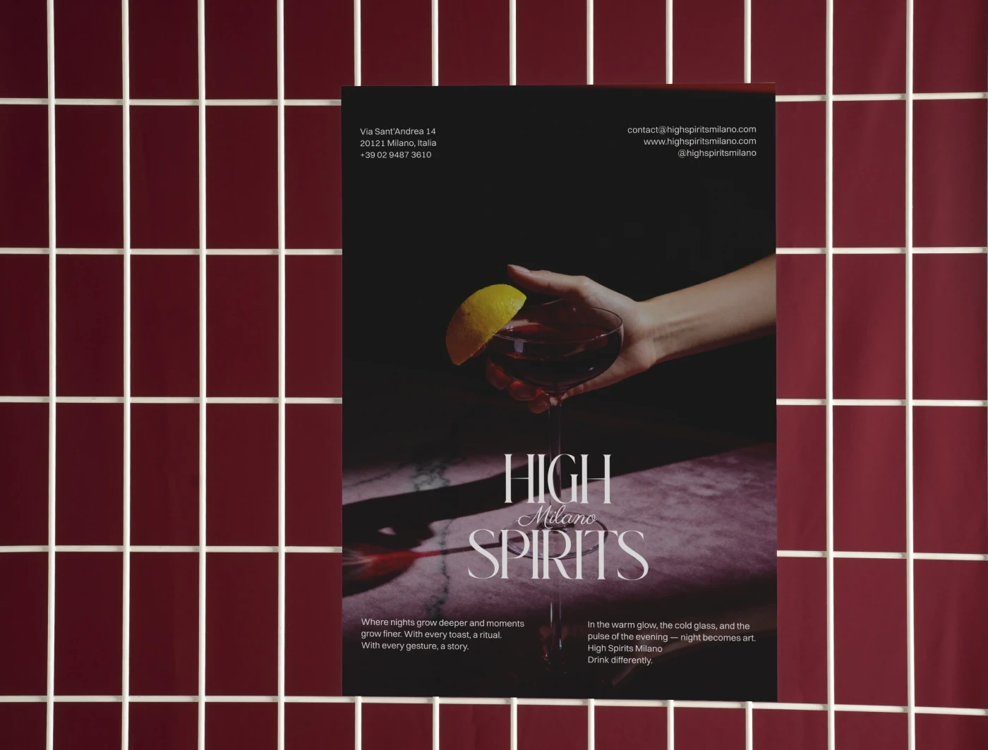 High Spirits Milano is a cocktail lounge created to celebrate the city's nightlife aesthetic. The goal of the project was to develop a brand that reflected the understated sophistication, cinematic atmosphere, and ritualistic culture that define Milanese nightlife.