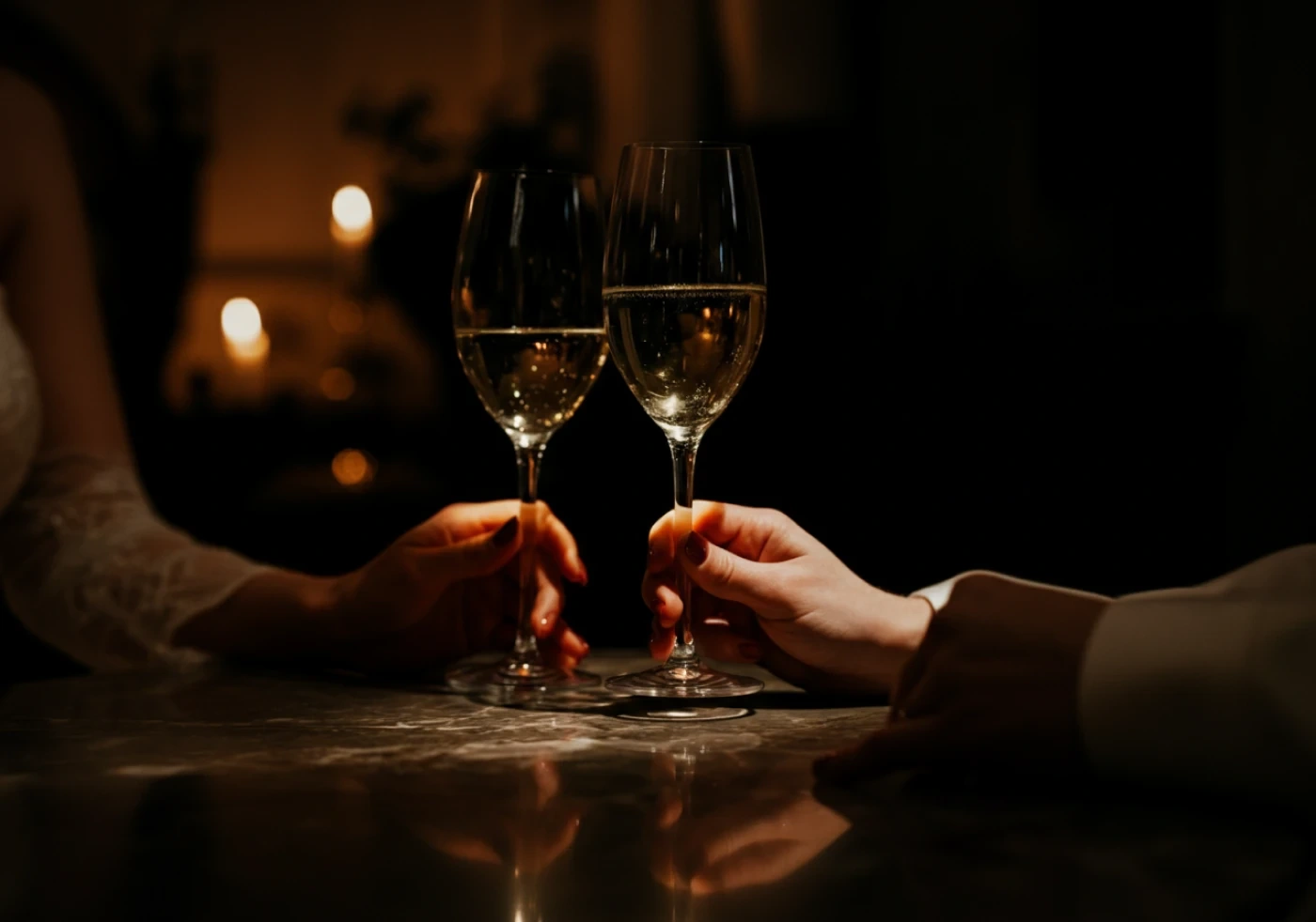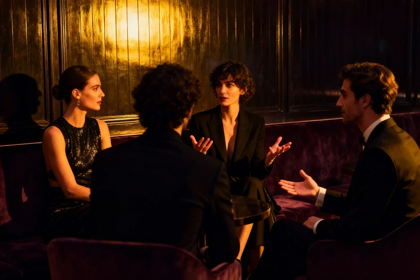 Elements such as velvet, marble, glass, and warm lighting influenced both the graphic design and the photographic direction.