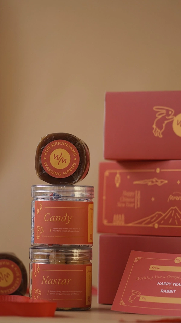 As a new brand, Warung Mrene faced the challenge of launching during Chinese New Year without getting lost in a crowded festive landscape. Through a modern reinterpretation of traditional elements, this hamper was designed to serve as both a meaningful gift and a strong first impression—establishing the brand’s warmth, quality, and cultural sensitivity.