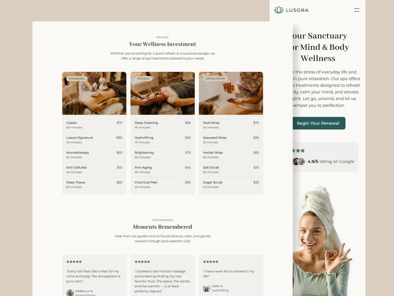 Designed for a smooth user experience and high conversion, it’s the perfect choice for spas and wellness centers looking to captivate and convert visitors.