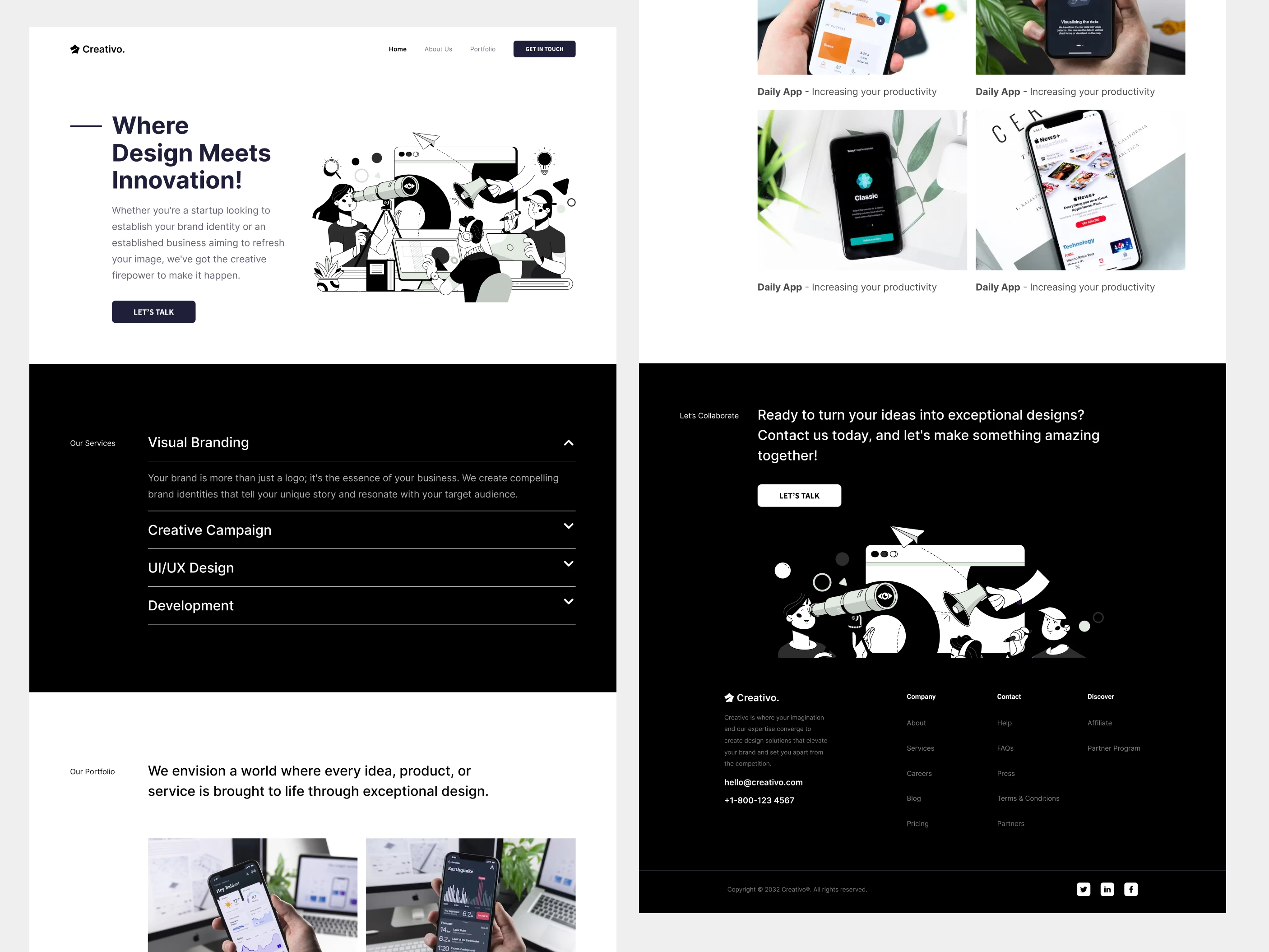 Designed a clean, user-centered landing page for a creative agency, helping them present their services clearly while showcasing their work and increasing client inquiries.