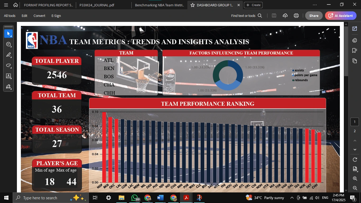 Performed detailed analysis of NBA team metrics to uncover performance trends; create full report and interactive Power BI dashboard for data-driven decisions.