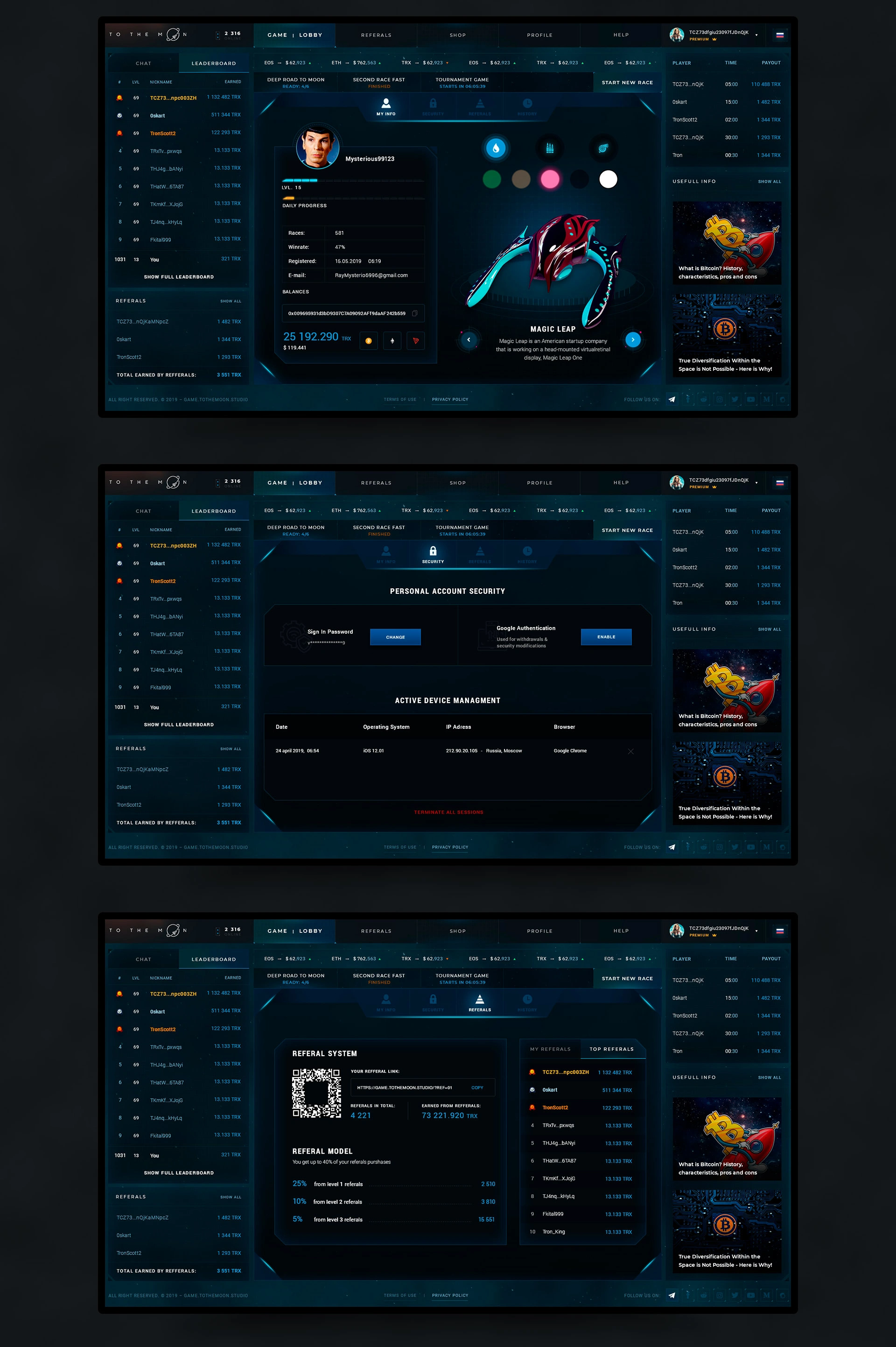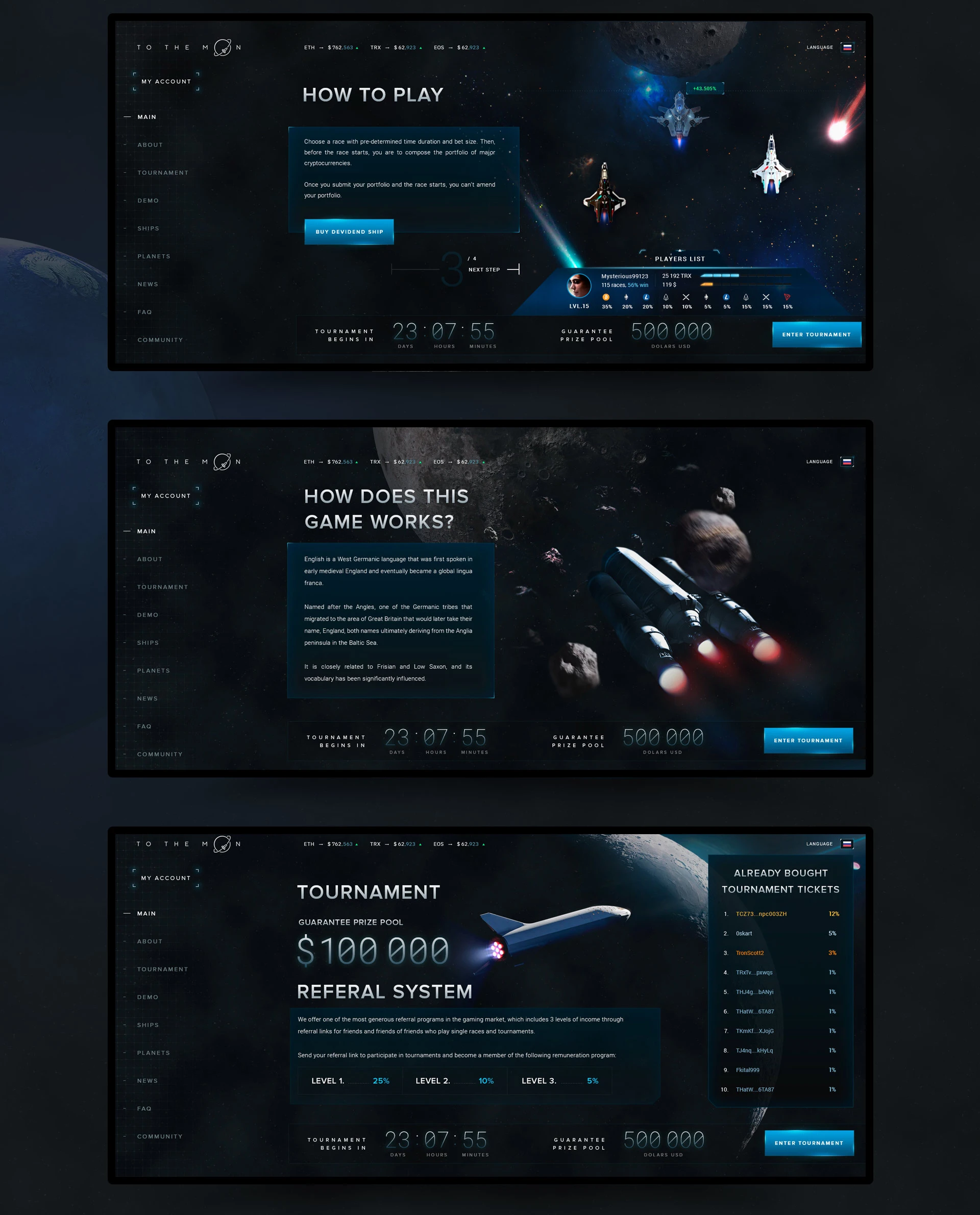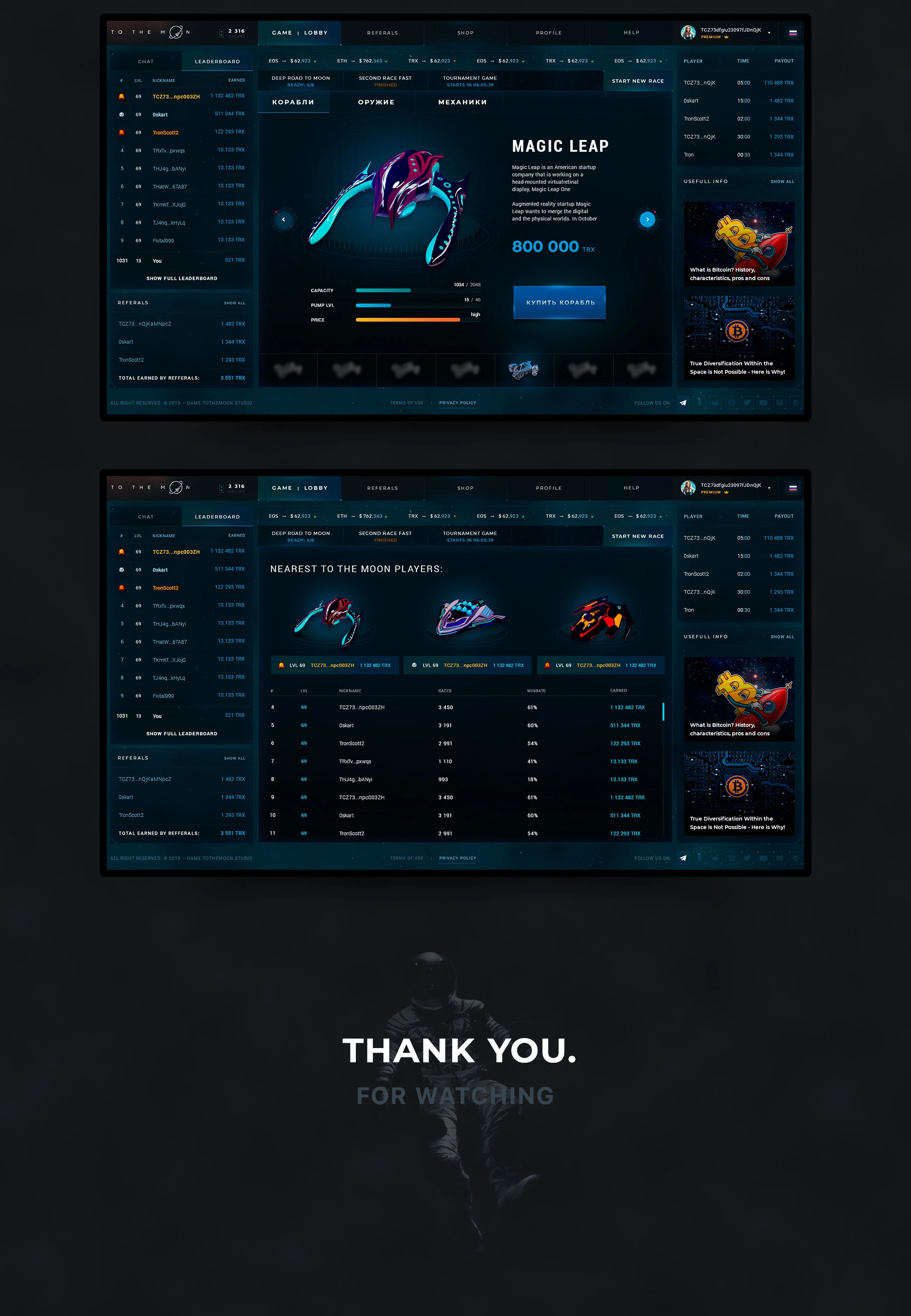 Platform where players are competing against each other by composing portfolios of cryptocurrency coins and setting the time frame for their competition.