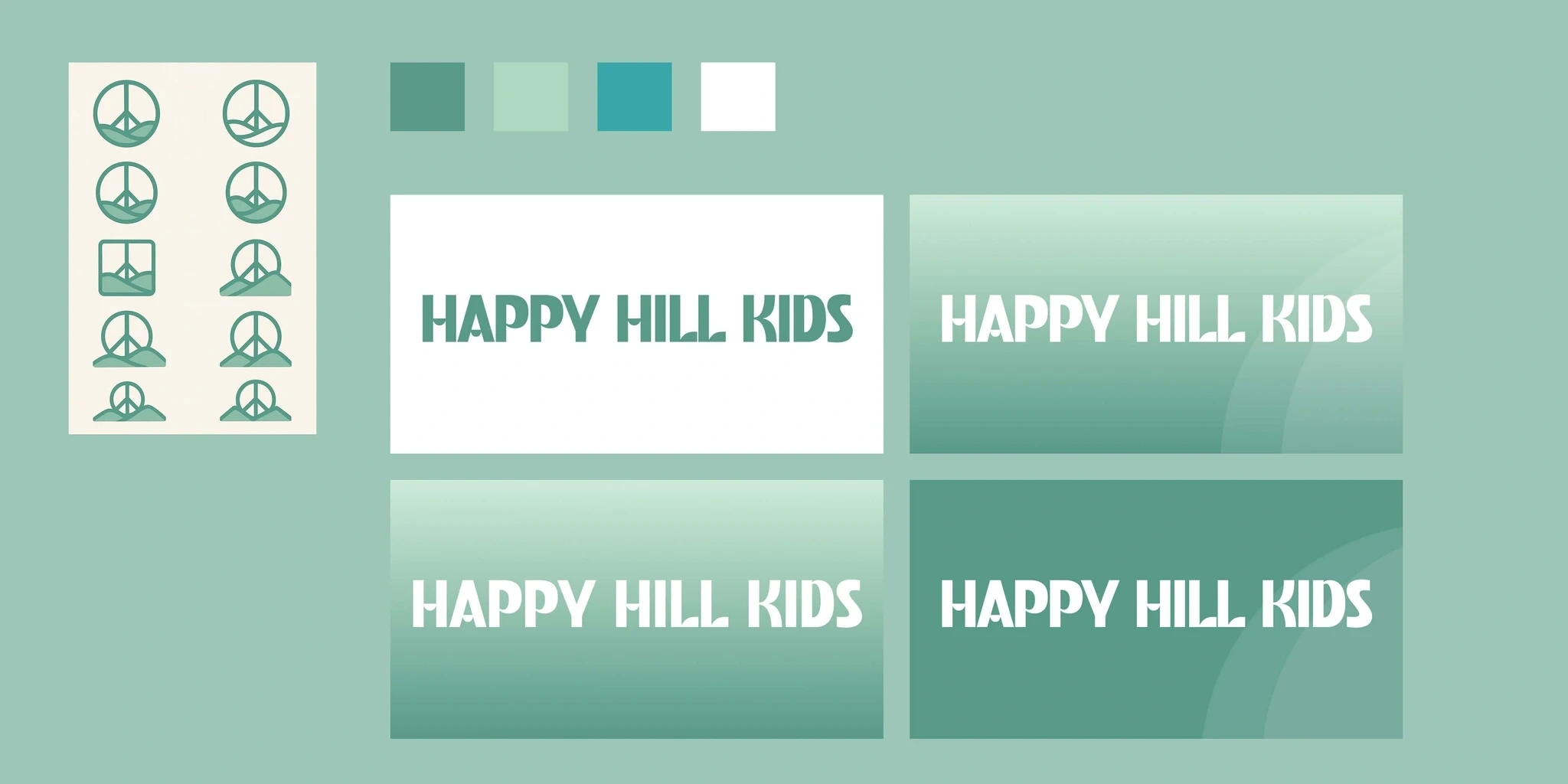 Starting with only past logo iterations and a few color preferences, our first step was to build a cohesive brand palette and choose typography that captured the mission, vision, and spirit of Happy Hill Kids.
