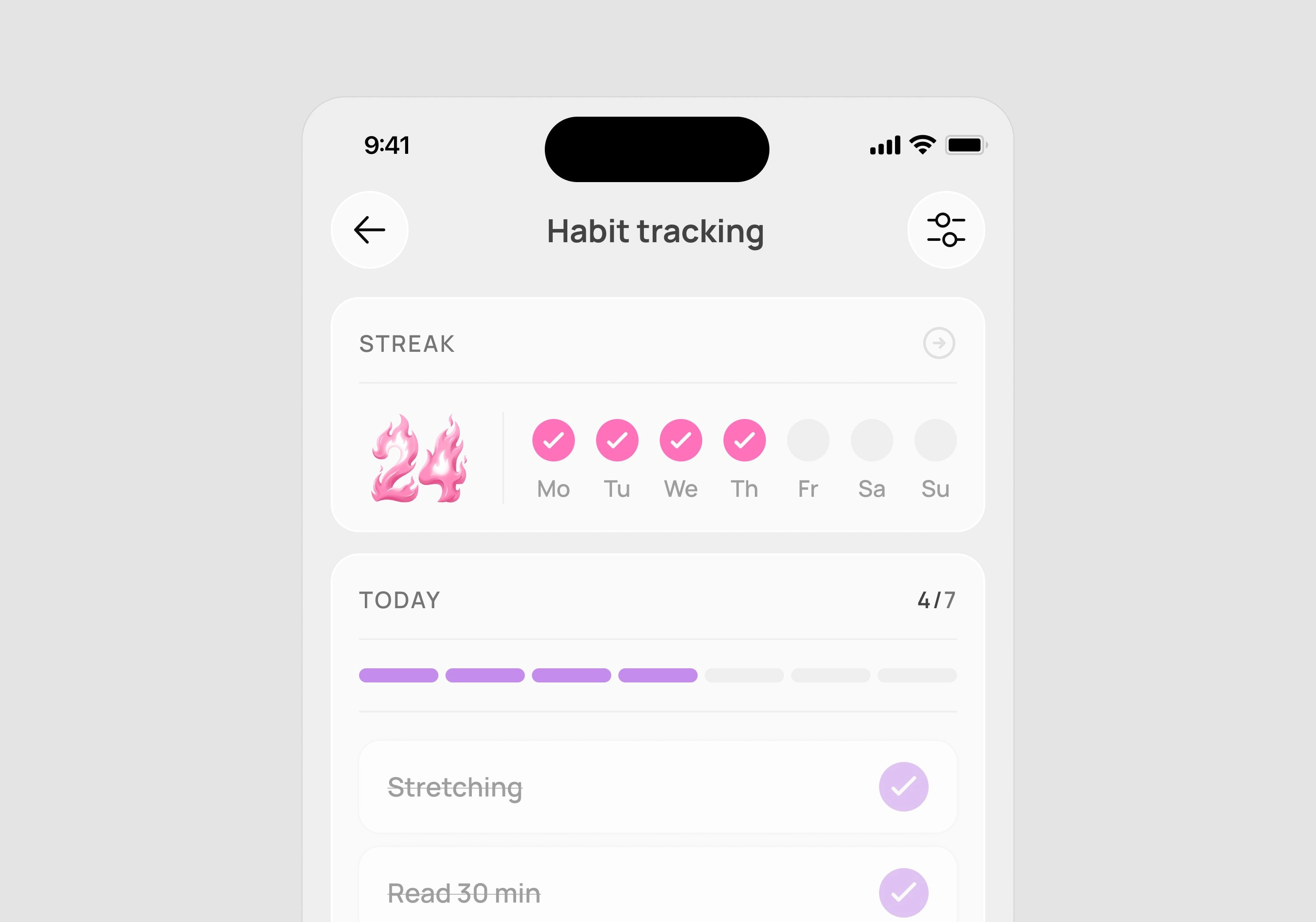 The interface is designed to reduce cognitive load while giving users quick access to key health metrics such as steps, calories, heart rate, sleep, and habit tracking. Each section is structured around progress visualization and actionable feedback, helping users understand their patterns and make better daily decisions. The goal was to create a calm, supportive experience that fits naturally into a userβs routine rather than overwhelming them with data.