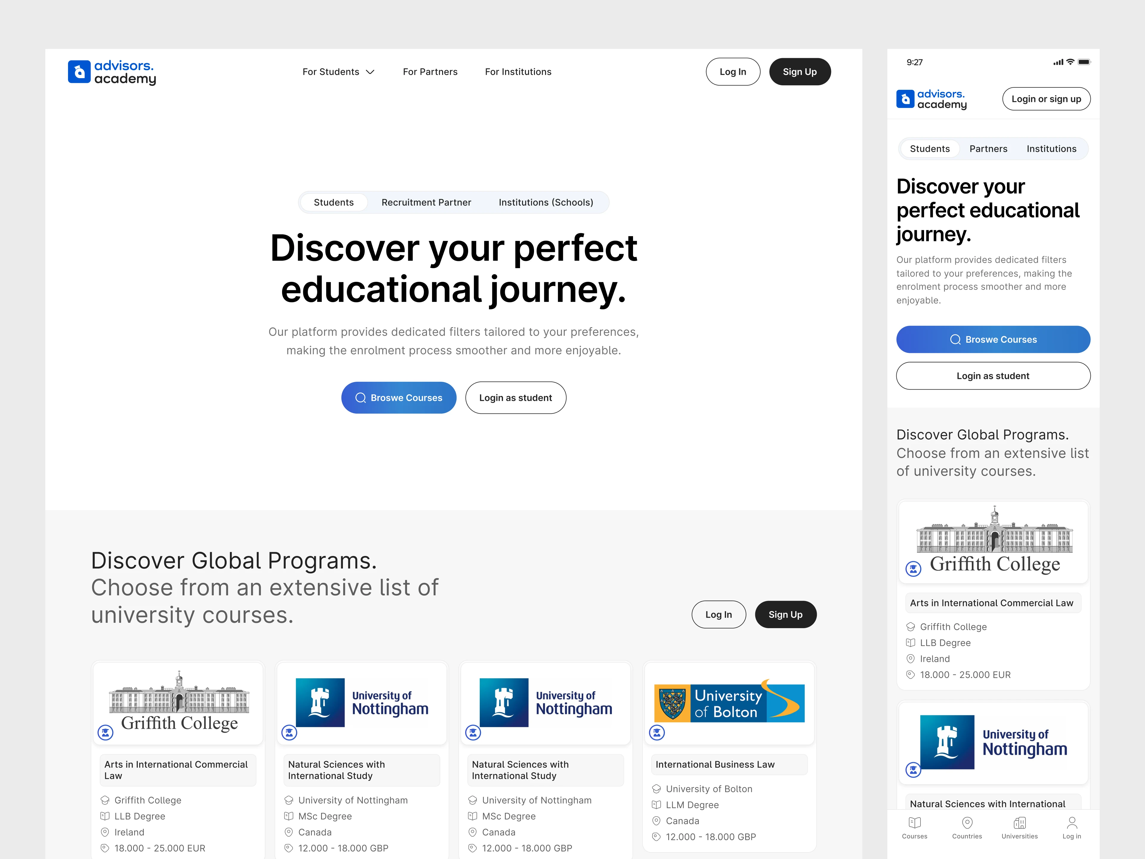 We worked with the largest study abroad company in Nigeria to create an online presence for its AI-based Edtech product. We crafted a unique branding that communicates with their three main customers: Students, Recruitment Partners and Institutions (Schools).