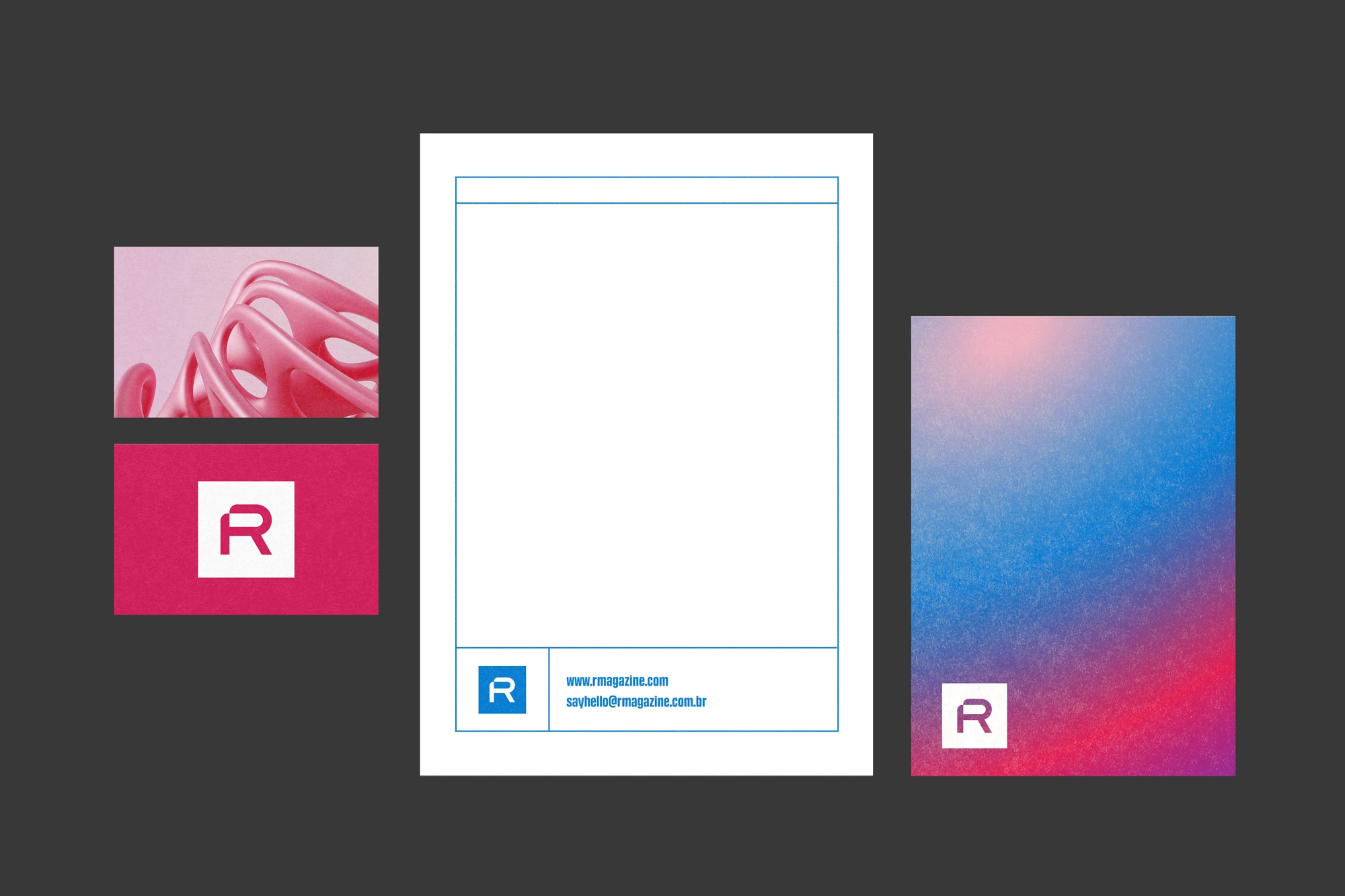The magazine colors has vibrant and colorful tones of pink, turquoise and grey and in the graphics the representation of luxury and tech magazines stuff through a pattern with gradients, in addition to the lines that made and modern identity.