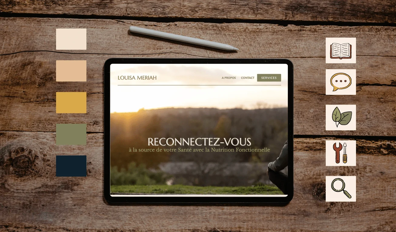 Louisa M. was looking to take the next step in her business and be more visible and professional online. She already had a booking system but wanted her proper corner of the internet. The goal was to create a bright and natural brand identity, conveying her nutritionist skills but also her holistic style.