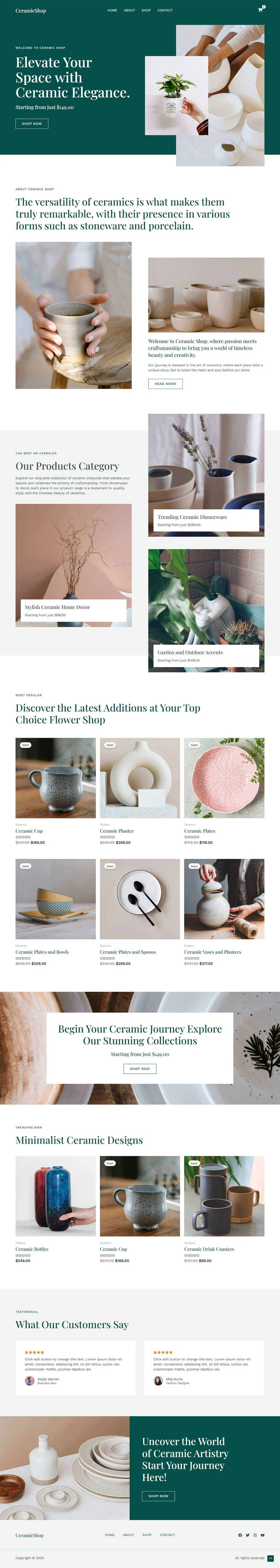 The design emphasizes balance and whitespace — essential for highlighting product craftsmanship. Each section, from “Shop Now” to “What Our Customers Say,” was built with user flow in mind, ensuring visitors can browse, explore, and purchase effortlessly.