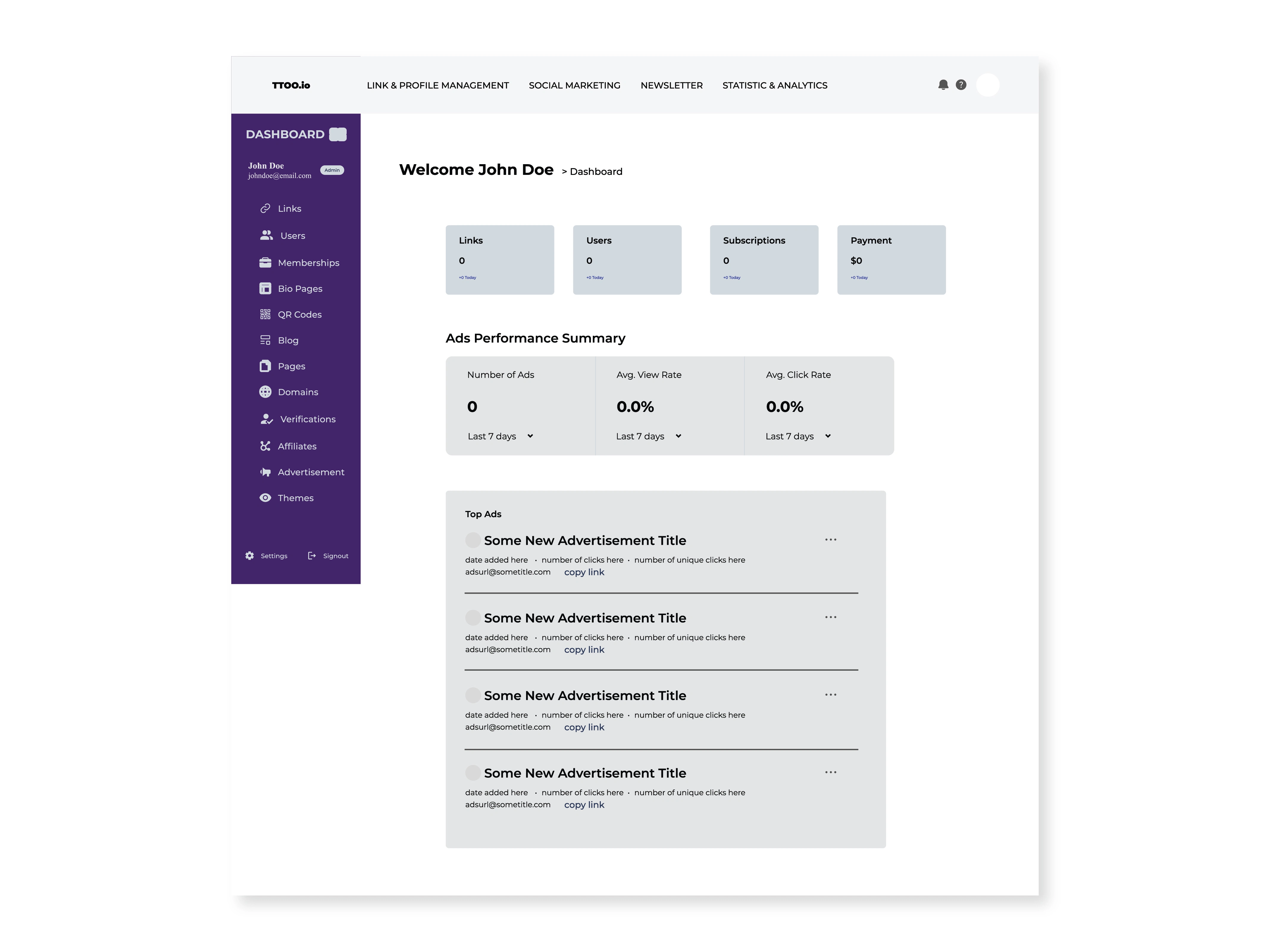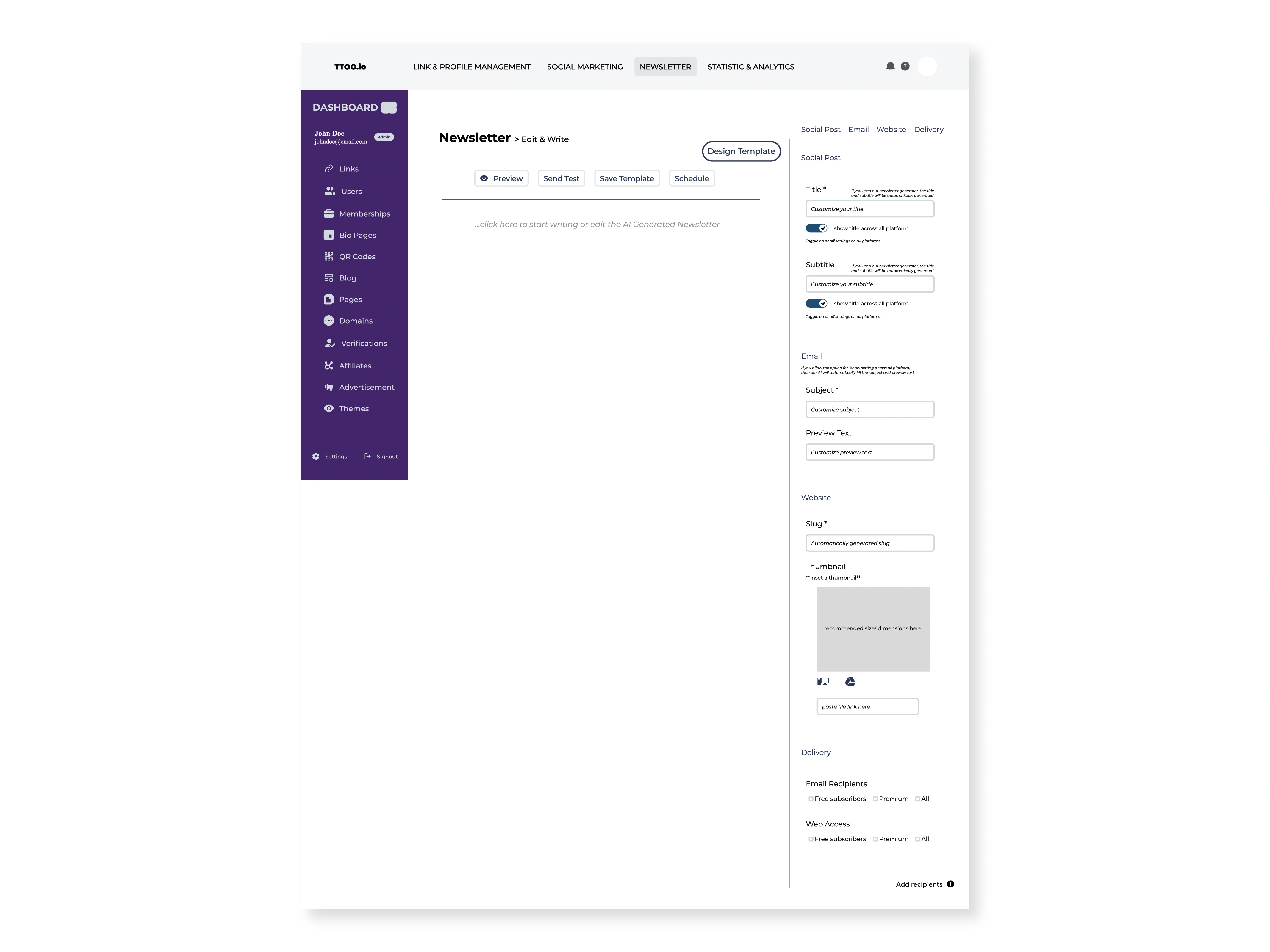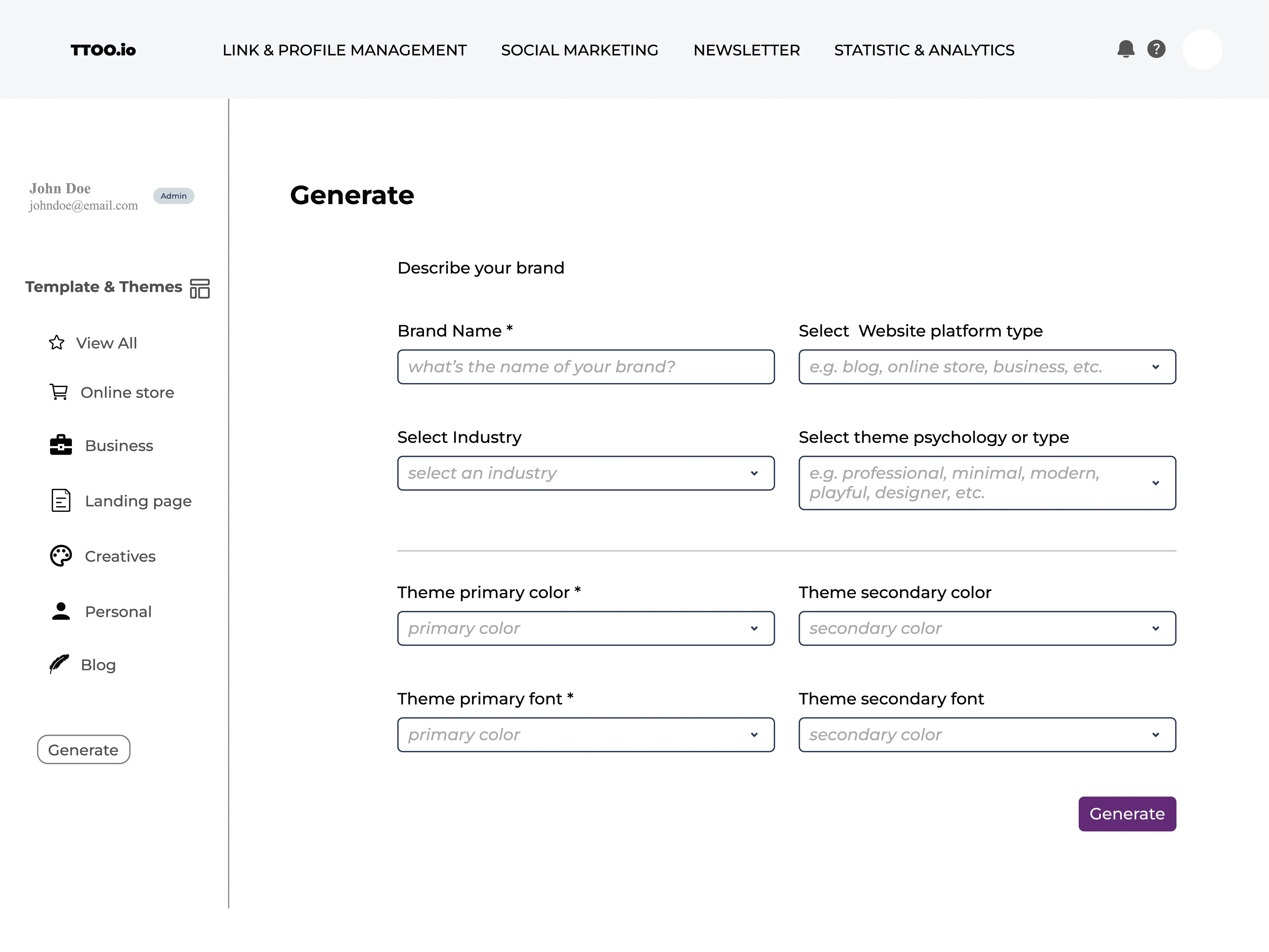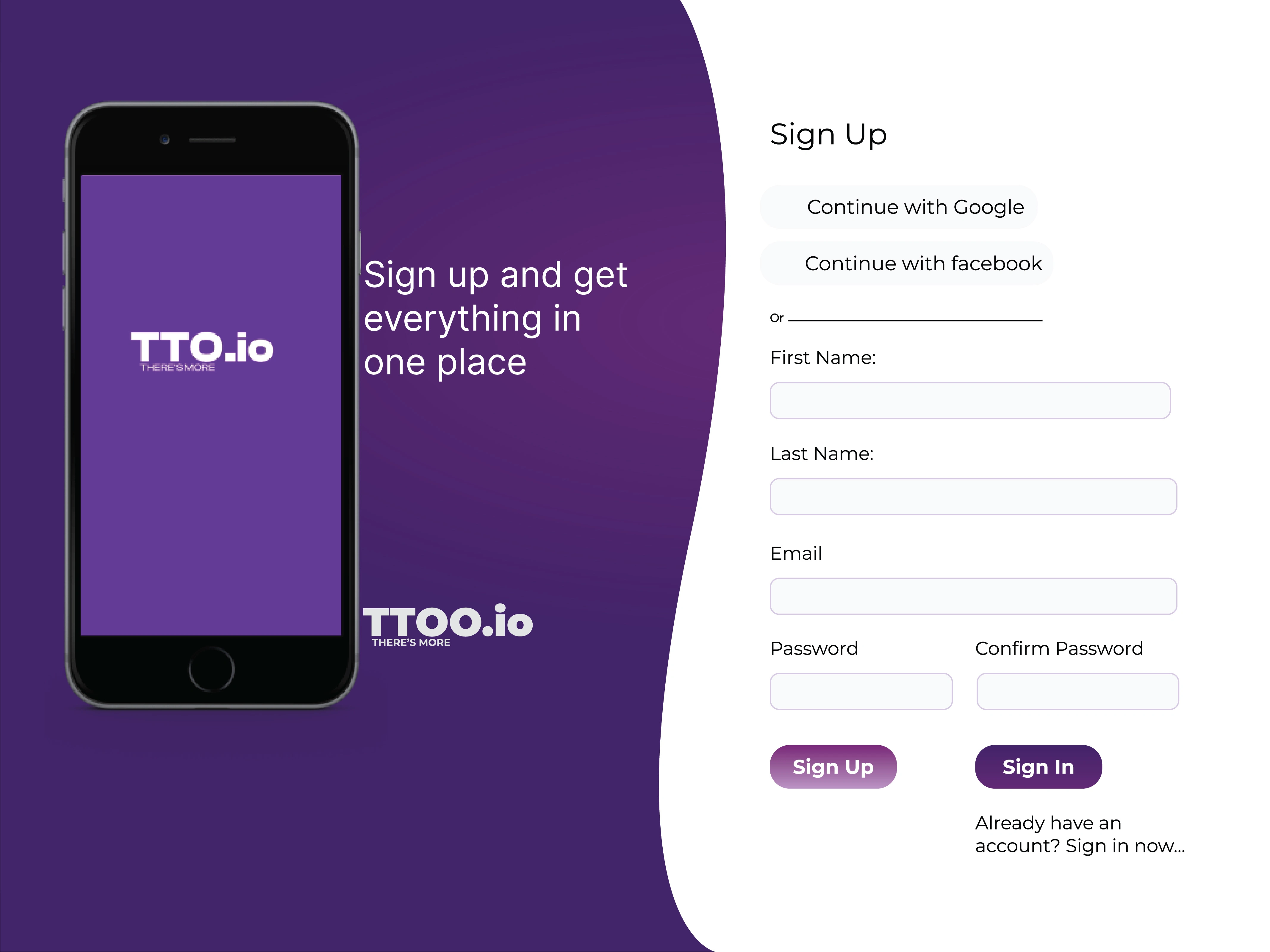 Designed TTOO.io, an AI powered Web app that allows user to do digital, social media, or content creating. Users can signup/sing-in, Choose an account type.