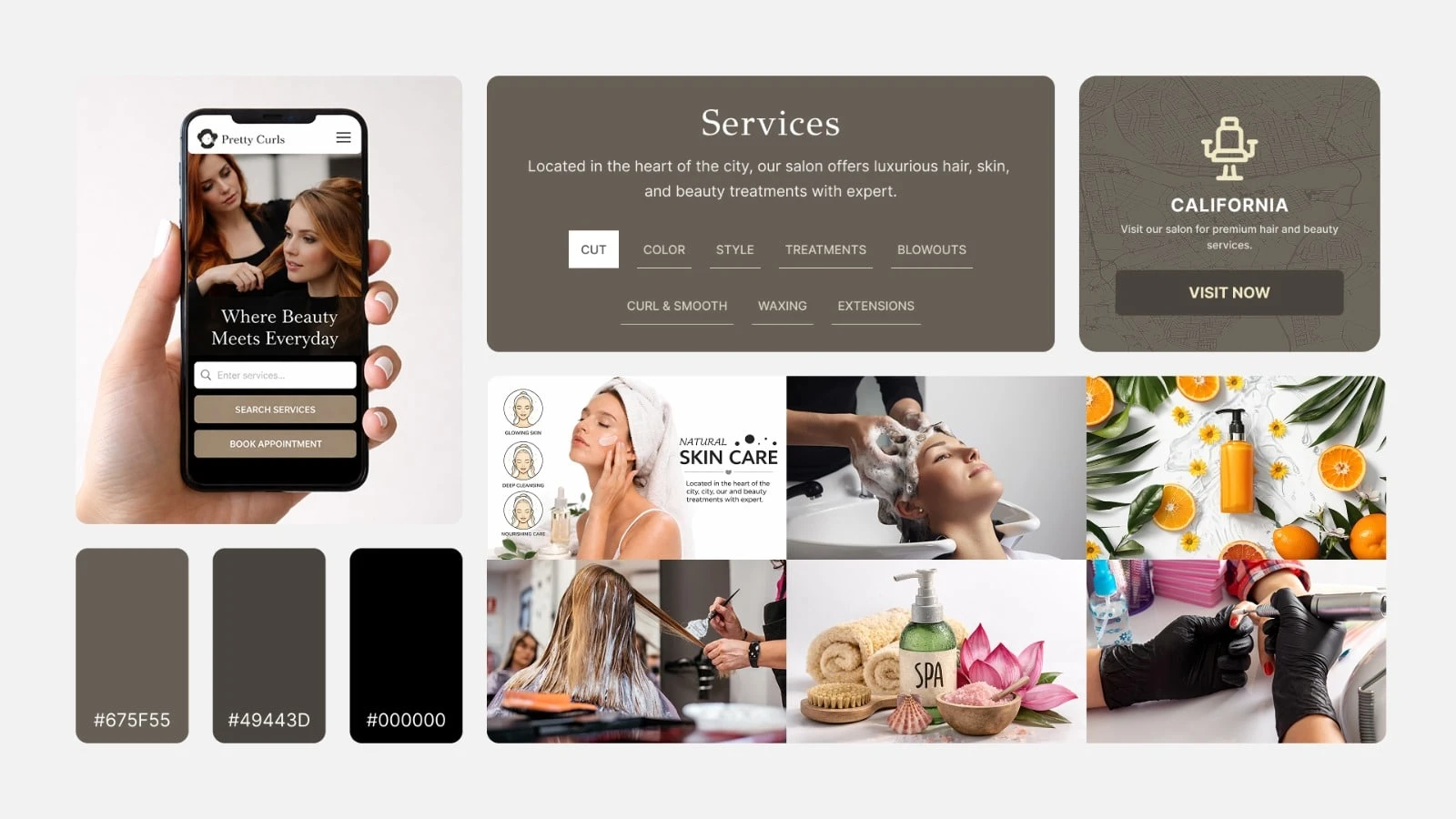 A modern beauty salon website designed to showcase premium services, professional stylists, and client experiences. The interface focuses on clean aesthetics, smooth navigation, and engaging visuals, helping users easily explore services, discover the salon, and book their beauty appointments confidently.