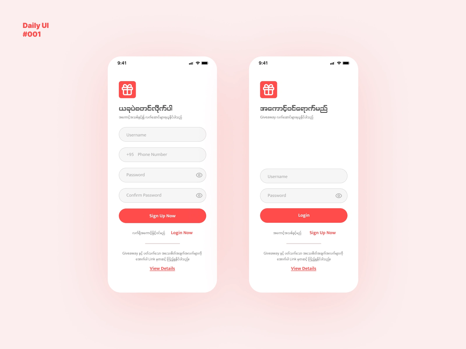 Login and Signup simple user interface design made with Figma