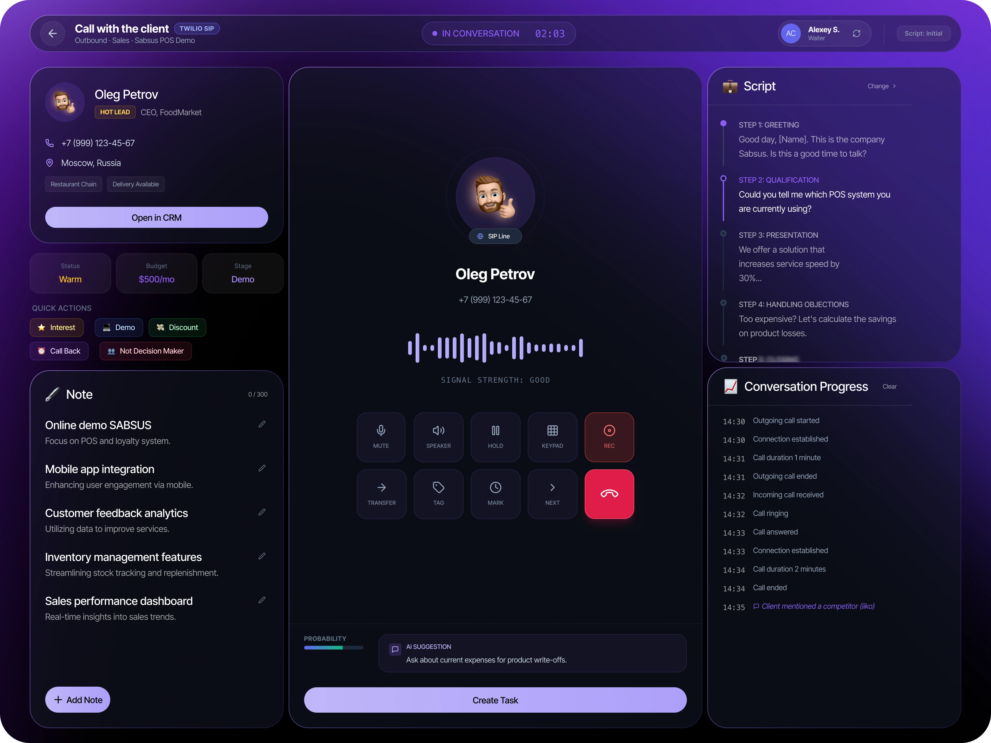 Designed a node-based automation workflow builder with a dark purple UI, custom properties panels per node type, and visual canvas with neon connectors.