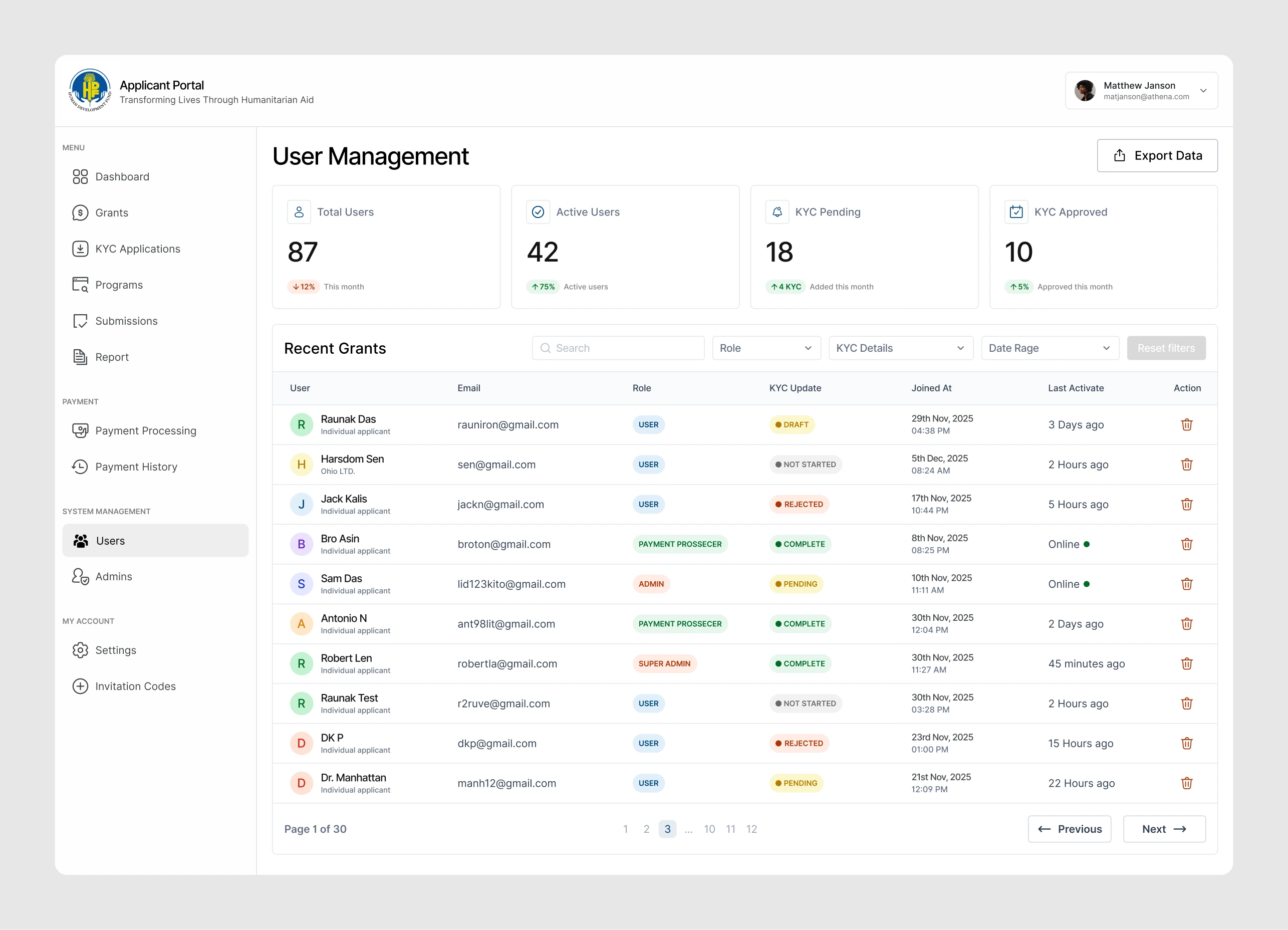 An Admin portal designed to operate the grants smoothly throughout the organisation.