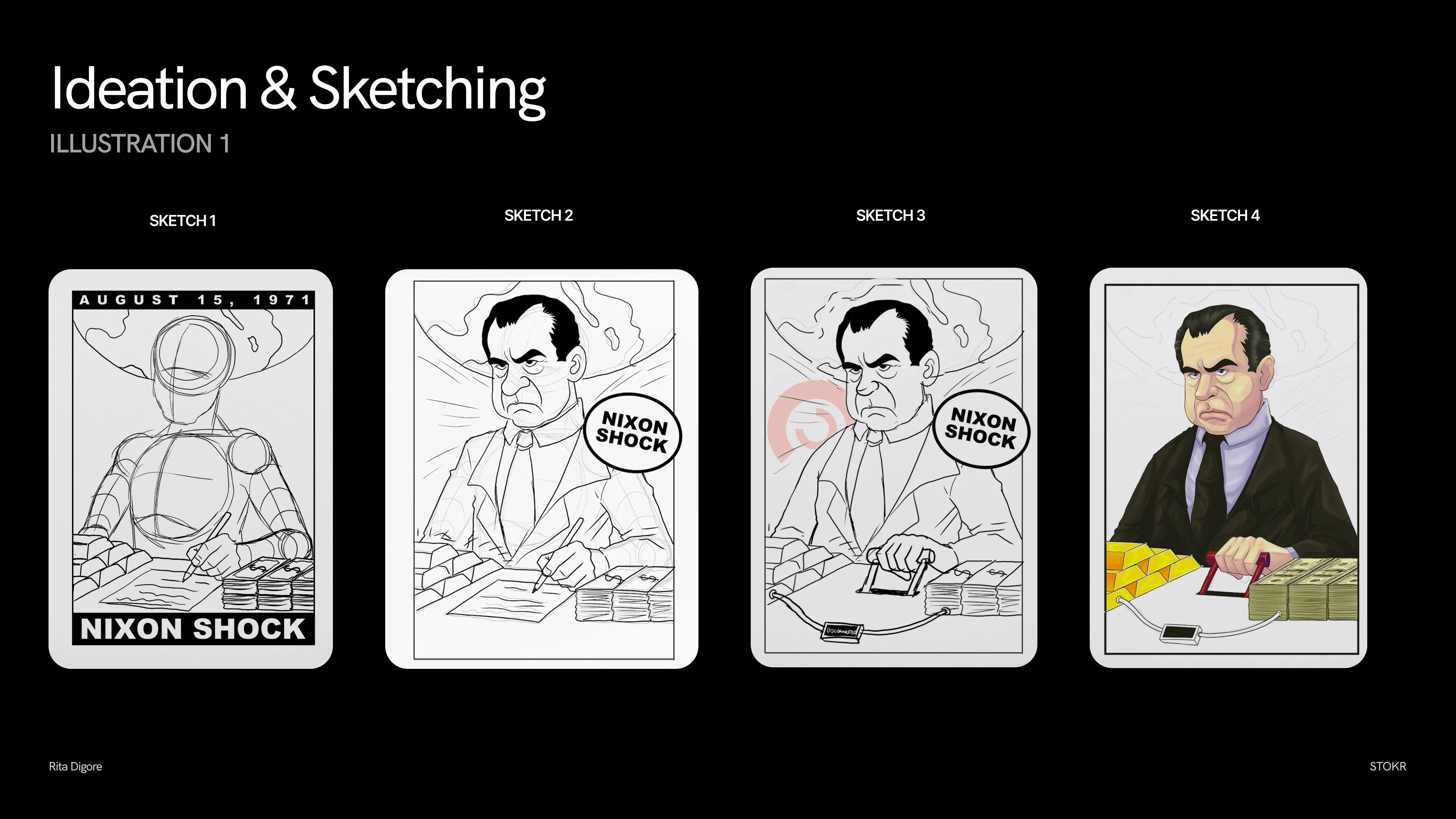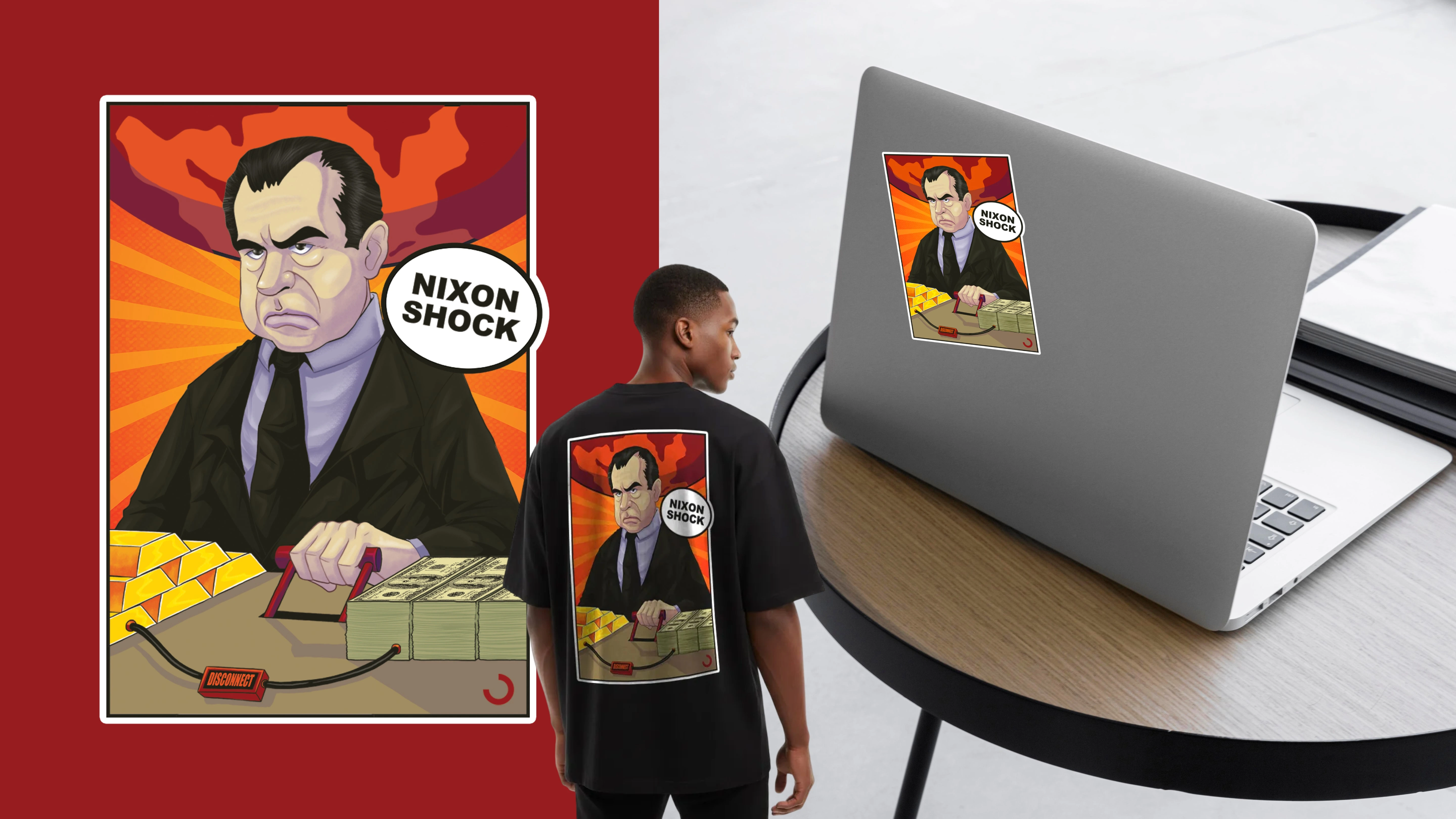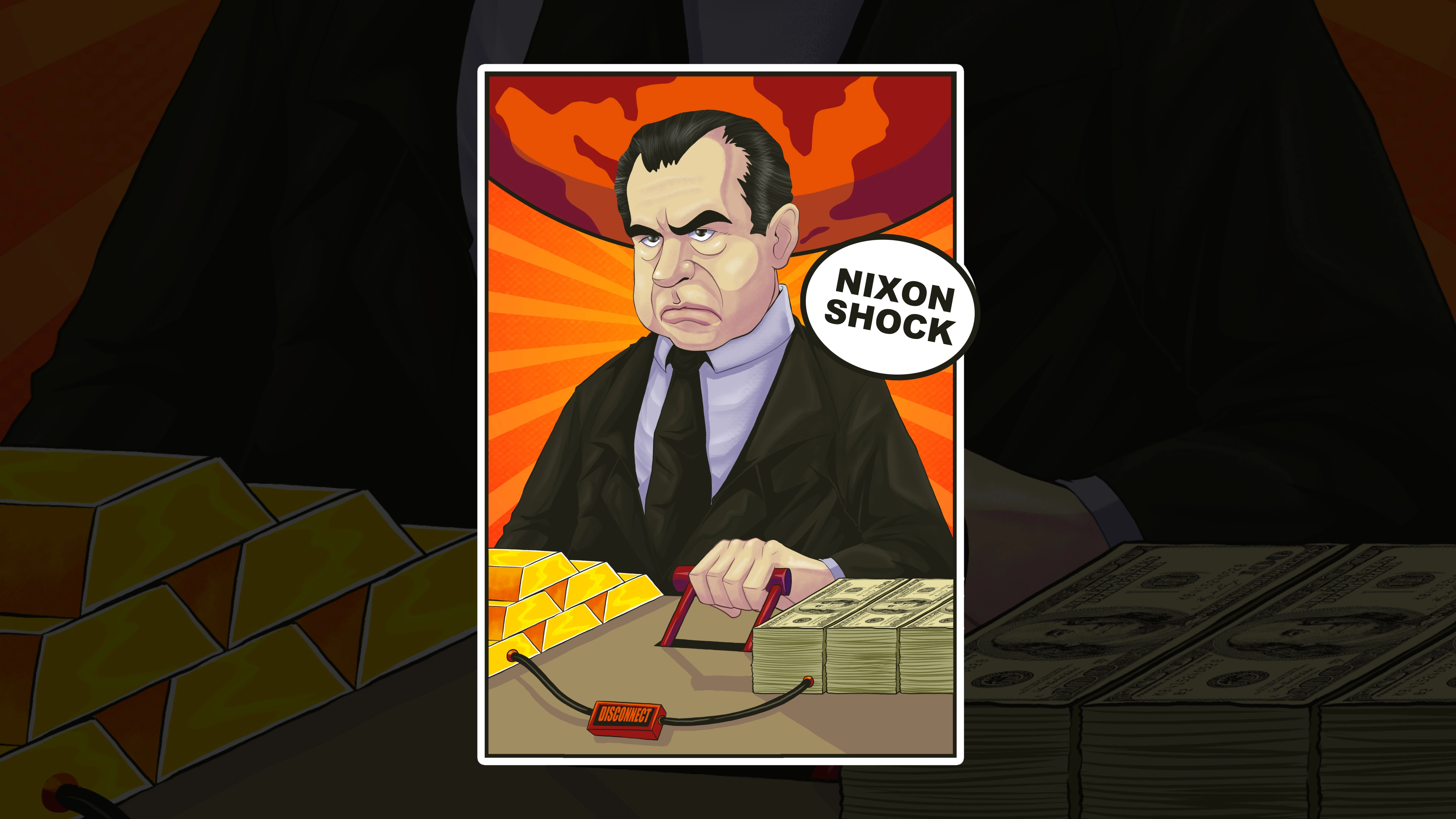 This illustration series looks at three key moments that changed the global financial system and led to the creation of Bitcoin. Each piece shows a breaking point where trust was lost and control shifted. The aim was not to explain history, but to turn these moments and their meaning into clear, emotional visuals.